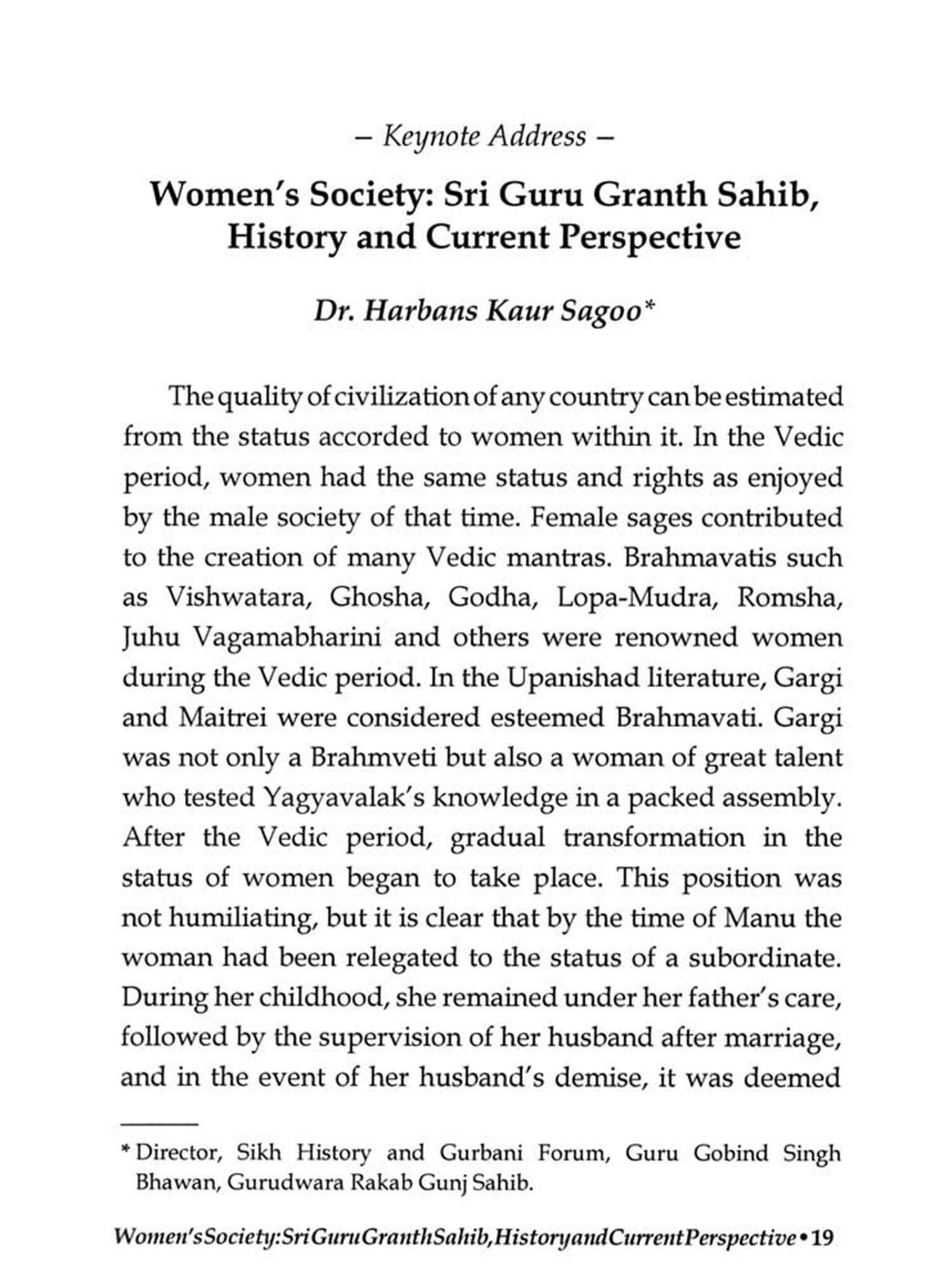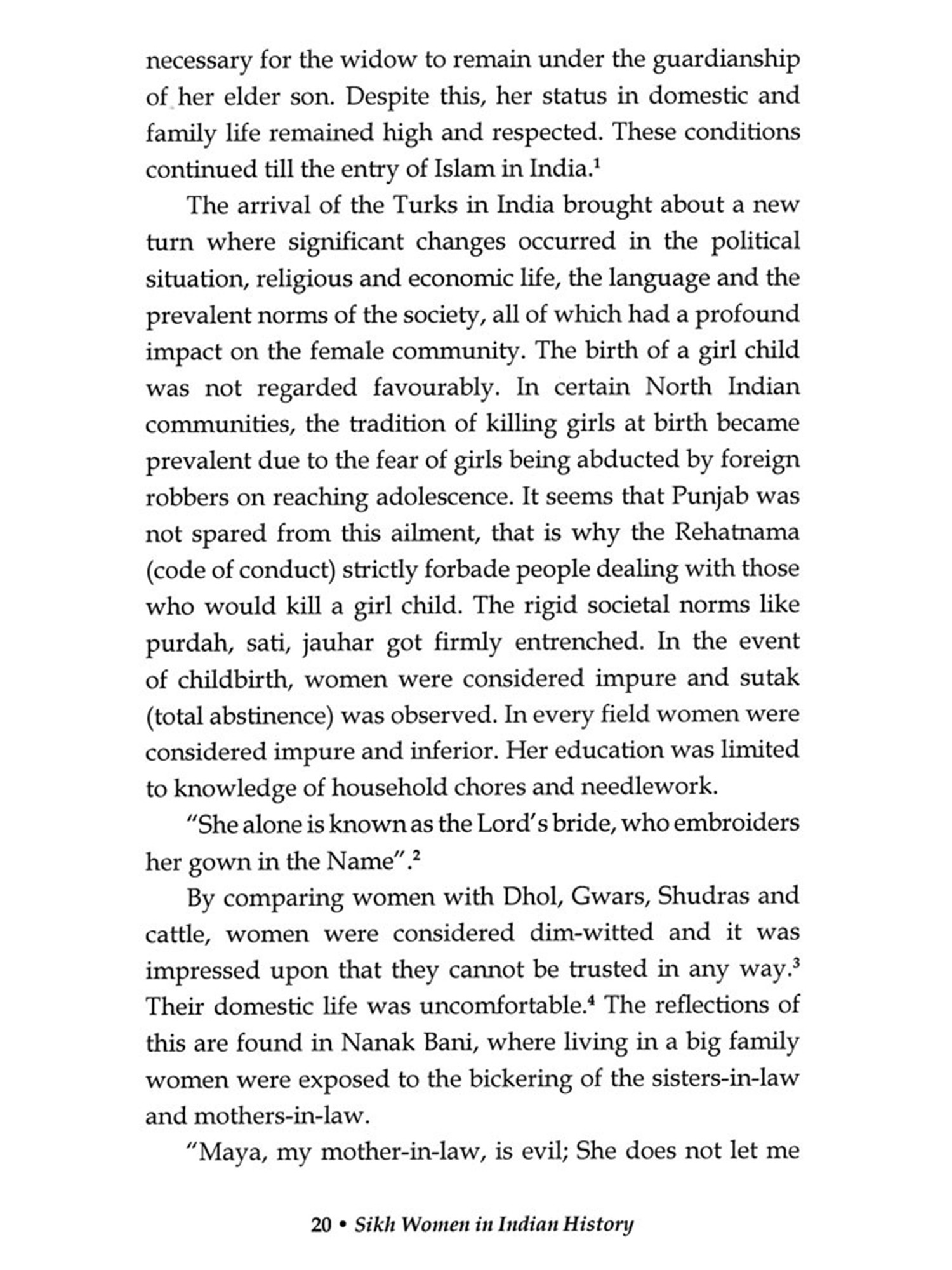 Each Community has an underlying character, and the general traits are exhibited in the conduct of most persons of that community. So, this underlying value system that runs throughout the Sikh community is the respect of women, which has been preached by the Gurus and is visible in the conduct of the followers of the Gurus. Women empowerment is a comparatively new concept; however, it has been given a totally new form and expression in the Sikh philosophy expounded by the Sikh Gurus and lifestyle taught and lived by them. The higher status accorded to women is in fact, spiritualization of women.Guru Nanak Dev inspired humanity to awaken towards their rights and motivated all men and women to attach themselves in the name of Almighty.