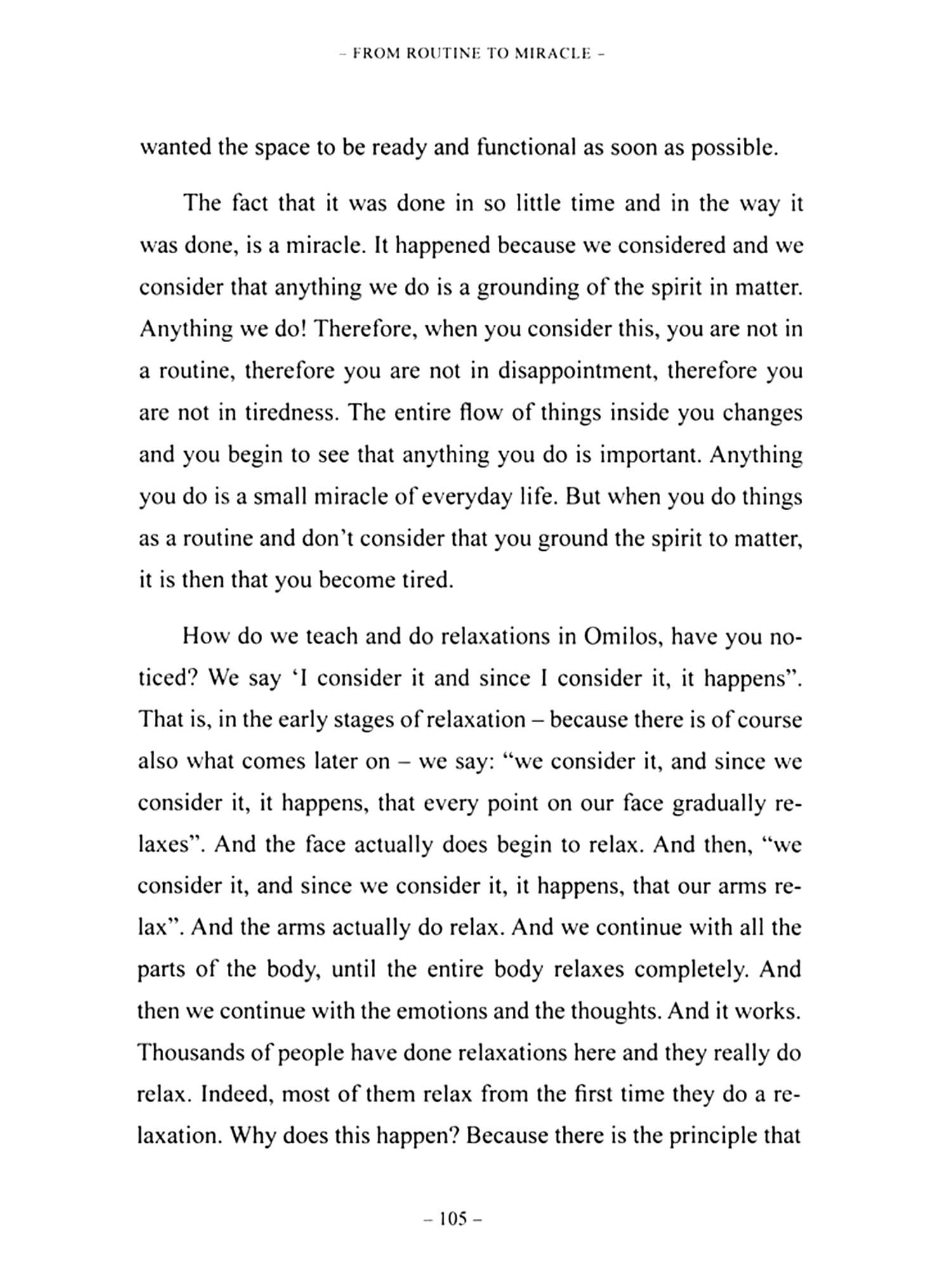 Each chapter is addressed to all of us together but also to each one of us individually, so that through its pages the reader can become part of all that is unfolding, as if they were present and part of the discussion when it first took place, to the degree, of course, that this is possible. There is no need for someone to agree or disagree, to accept or reject, to understand or not understand something. Very simply, as they read, they might see a different way of approaching everyday life, and if they find something that ""works for them"", as we say, to take it with them, if they consider that it can help them improve their life and be better.