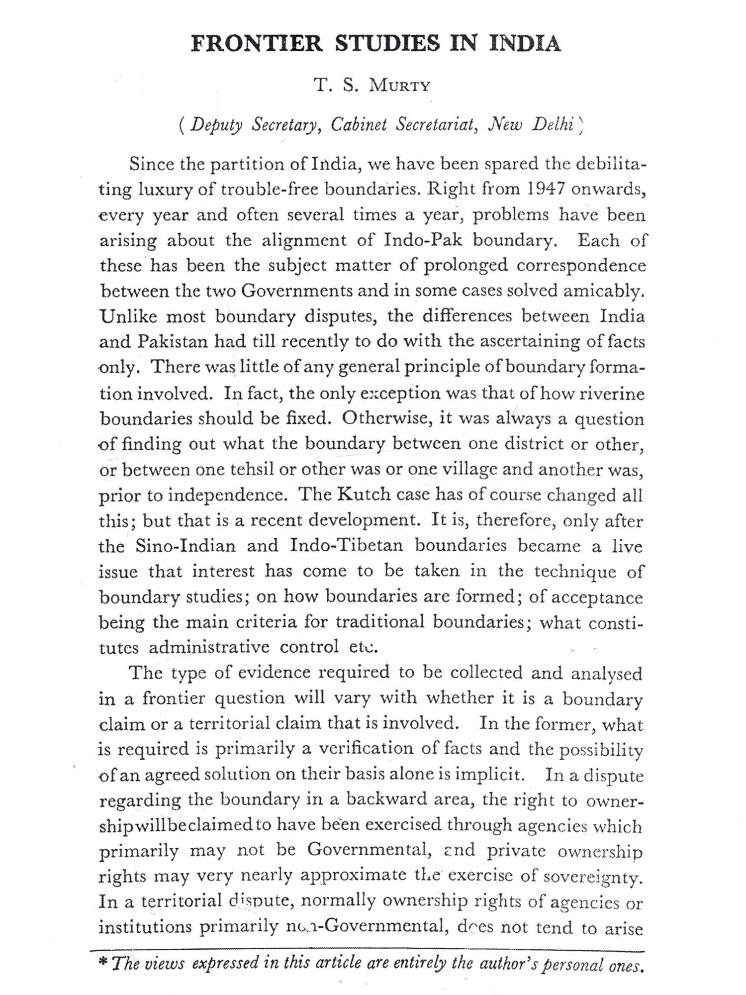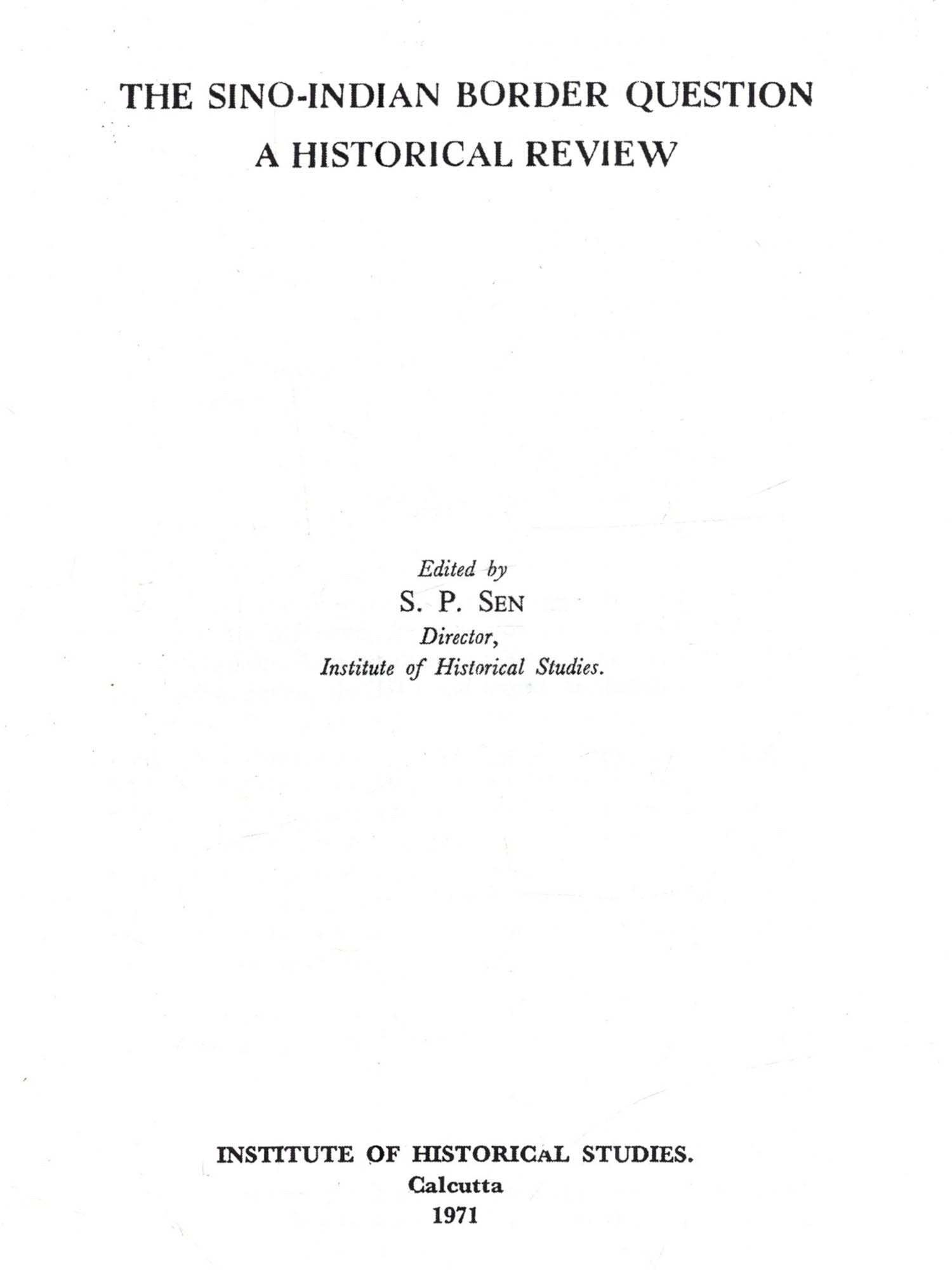 The Sino-Indian Border Question: A Historical Review