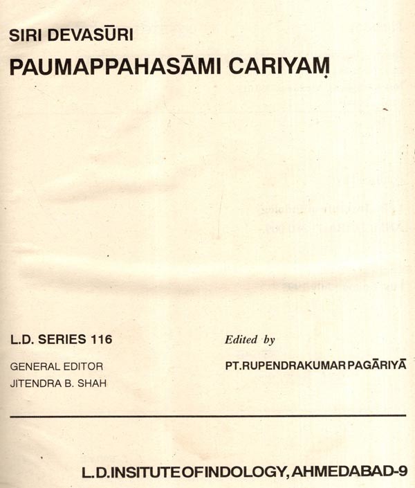 सिरिदेवसूरिविरइयं सिरिपउमप्पहसामिचरियं: Siri Devasuri's- Paumappahasami Cariyam (An Old and Rare Book)