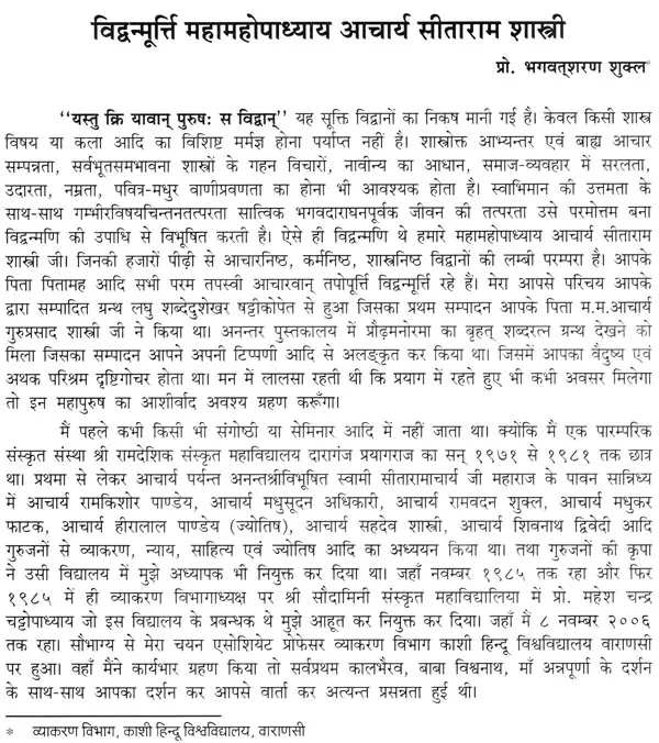 Mahamhopadhyaya Shri Sitaram Shastri Smriti Grantha