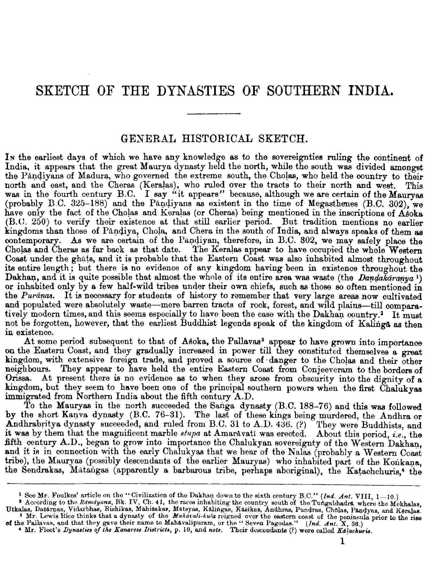 A Sketch of the Dynasties of Southern India (Compiled Under the Orders of the Government)