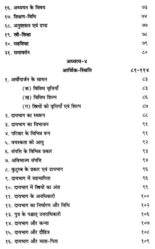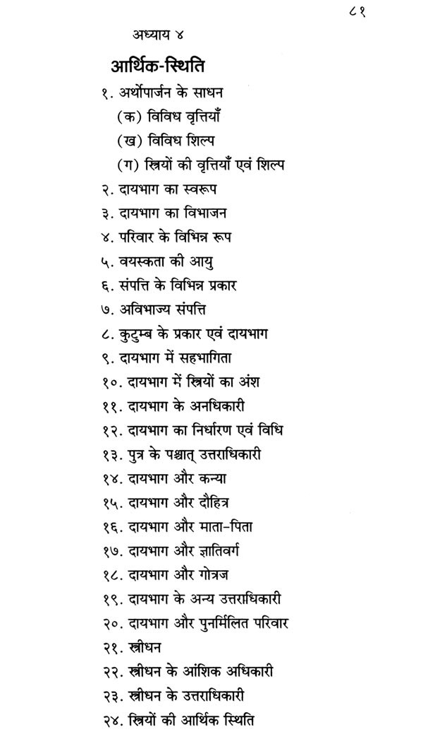 स्मृतियों ने यह स्वीकार किया है कि भारतीय नारियों का अतीत बहुत उत्तम था, परन्तु स्मृतियों में उन्हें उतना उन्नत नहीं प्रस्तुत किया गया है। स्त्रियों की उच्च शिक्षा की व्यवस्था नहीं थी। उन्हें राजनीति में विशेष अधिकार प्राप्त नहीं थे। उन्हें सर्वत्र रक्षणीय बताया गया है। प्रस्तुत शोध-प्रबन्ध का लक्ष्य है- स्त्रियों में जागृति उत्पन्न करना और उसके द्वारा राष्ट्र की उन्नति के लिए योग्य महिला नागरिकों को प्रबुद्ध करना।