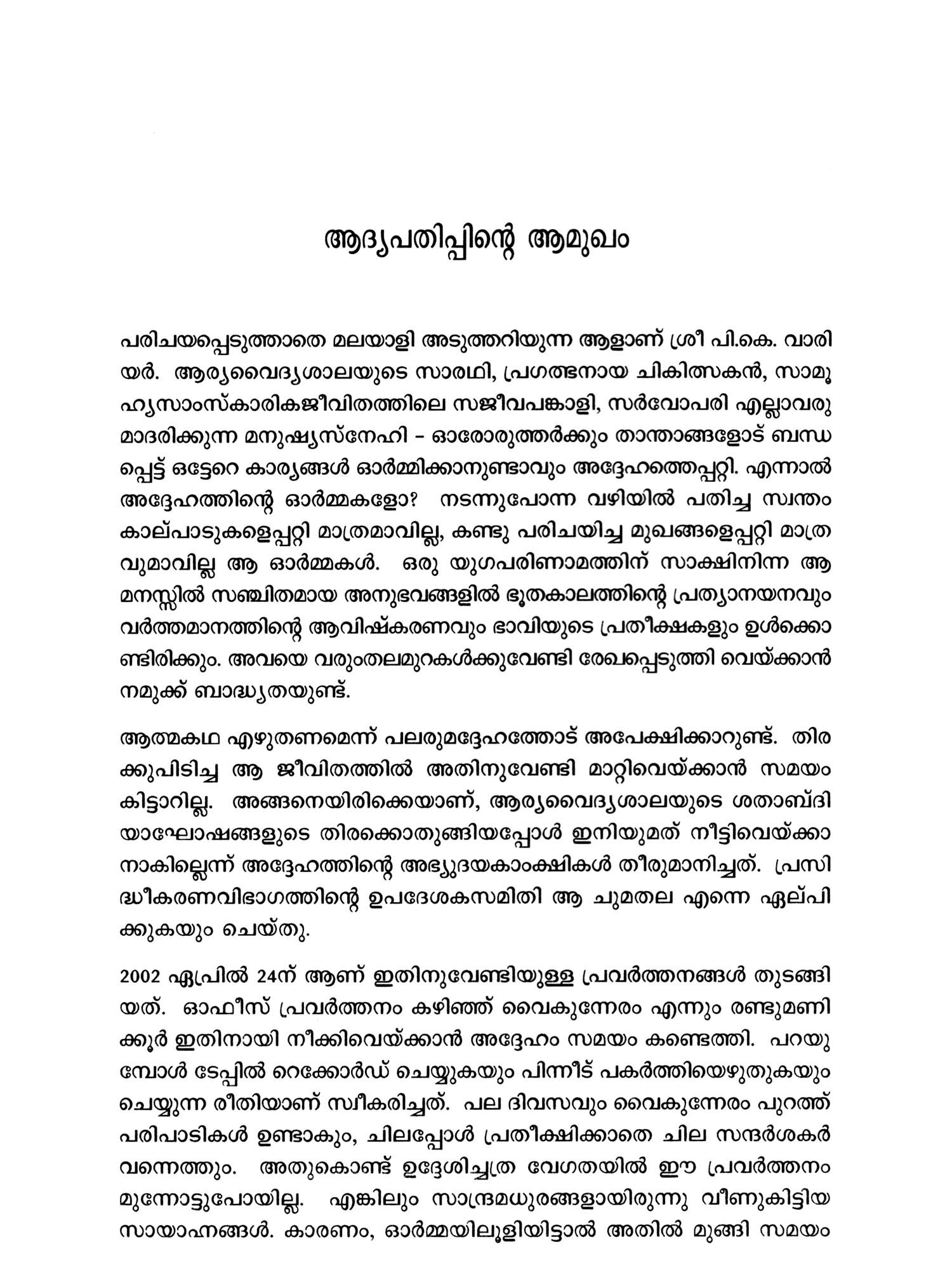 ആയുർവ്വേദത്തിന്റെ പ്രഥമപാഠങ്ങൾ അഷ്ടാംഗഹൃദയത്തിൻ്റെ 14 അദ്ധ്യായം കൂടിയുള്ള സ്വതന്ത്ര വിവർത്തനം- Ayurvedathinte Prathamapadamgal First Lessons of Ayurveda, which is a translation of 14 chapters of Ashtangahridayam (Malayalam)