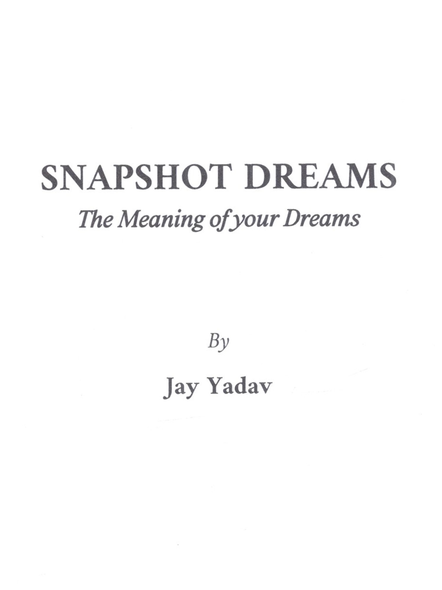 Jay Yadav is a practicing astrologer, esteemed writer, and spiritual guide, renowned for bridging ancient wisdom with modern understanding. With extensive experience in Vedic astrology, he is the acclaimed author of works such as "In the Roots of Vedic Astrology" and "601 Snapshot Predictions." In "Snapshot Dreams: The Meaning of Your Dreams," Jay extends his profound exploration by weaving together the timeless wisdom of Vedic scriptures, rich dream traditions, and contemporary psychological perspectives. His unique approach empowers readers to decipher the symbolic messages that arrive in the silence of the night, offering a clear path towards self-discovery, healing, and spiritual growth.
