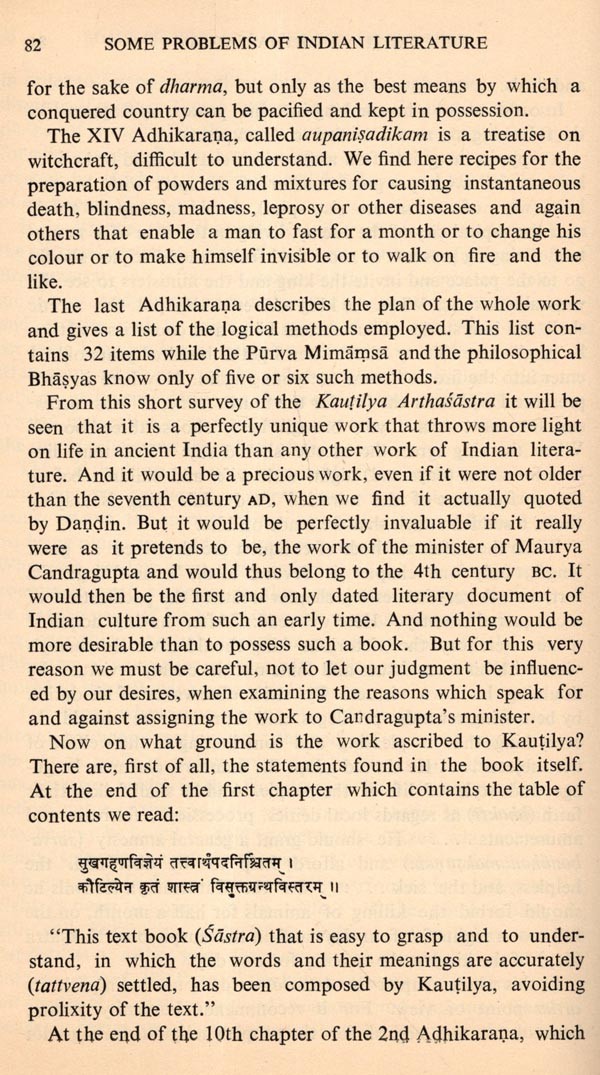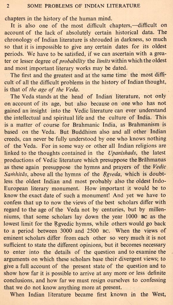 Professor M. Winternitz is one of the most distinguished German Sanskritists of this century. He visited India during 1922-23 at the invitation of Rabindranath Tagore. At that time he delivered six lectures on various problems of Indian literary historiography at the University of Calcutta. Some Problems of Indian Literature is the collection of those illuminating lectures which gave new insights to the study of Indian literature and culture. Here one finds pragmatic suggestions towards the ascertaining of the date of composition of the Vedic hymns, lucid analysis of the nature of ascetic poetry as found in the Mahabharata as well as in various Buddhist and Jain texts, an exposition on the ancient Indian ballads and their relation with later epics and plays, a thoughtful account of the Arthasastra and also one of the early critique on the plays of Bhasa. Professor Winternitz considered the history of the literary treasures "as part and parcel of the history of man." This comprehensive and larger view of literary history has given his writings a distinction. The chapter on Indian Literature and World Literature is an essay towards the understanding of the universality of literature. His admiration for Sanskrit literature is balanced by his objectivity and the lucidity of his style is but a manifestation of the clarity and richness of his thought and perception. In fact, this book is to be read and appreciated as a part of his greater work, History of Indian Literature, the most comprehensive and authoritative account of the ancient Indian literary activities.
