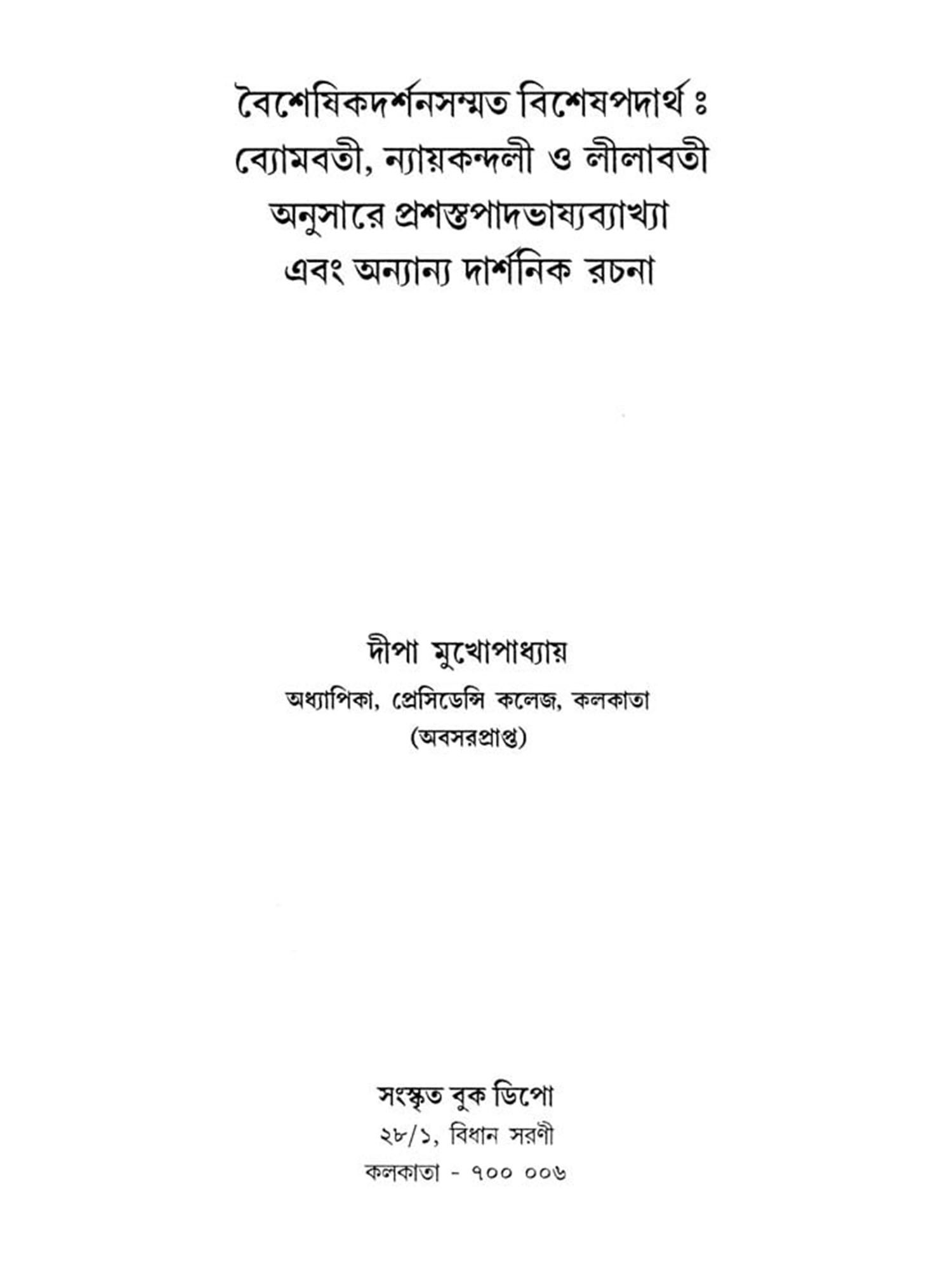 বৈশেষিক দর্শন: Vaisheshika Darshan- With translation and commentary by Sri Panchanan Tarkaratna Bhattacharya (Bengali)