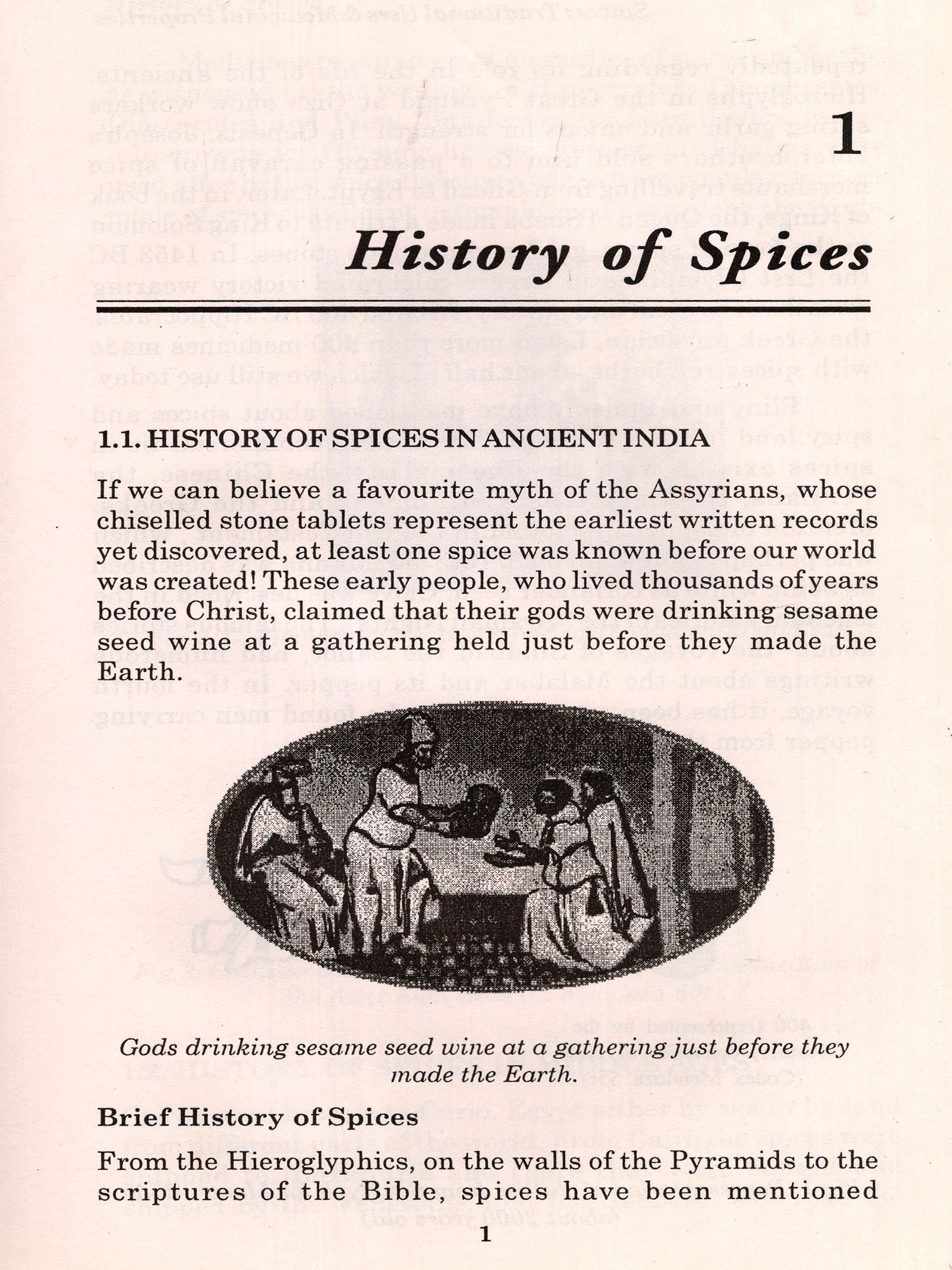 Spices were used in perfumes, offerings, medicine, preservatives, flavours, cultural marks, cosmetics, insecticides, and as condiments. Natural red and yellow colours prepared from red chilli, turmeric and saffron respectively were used as dyes.
