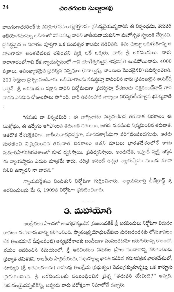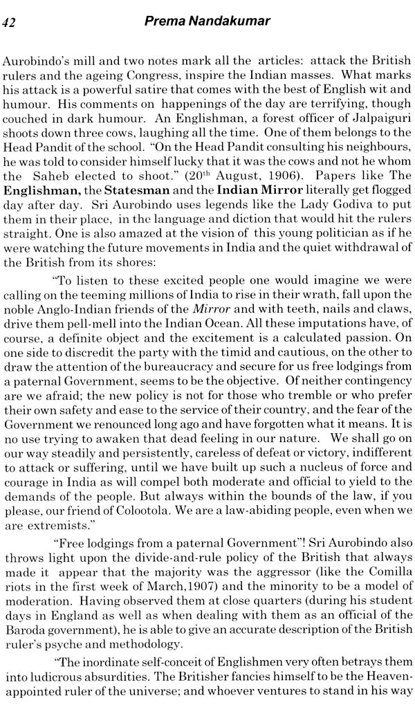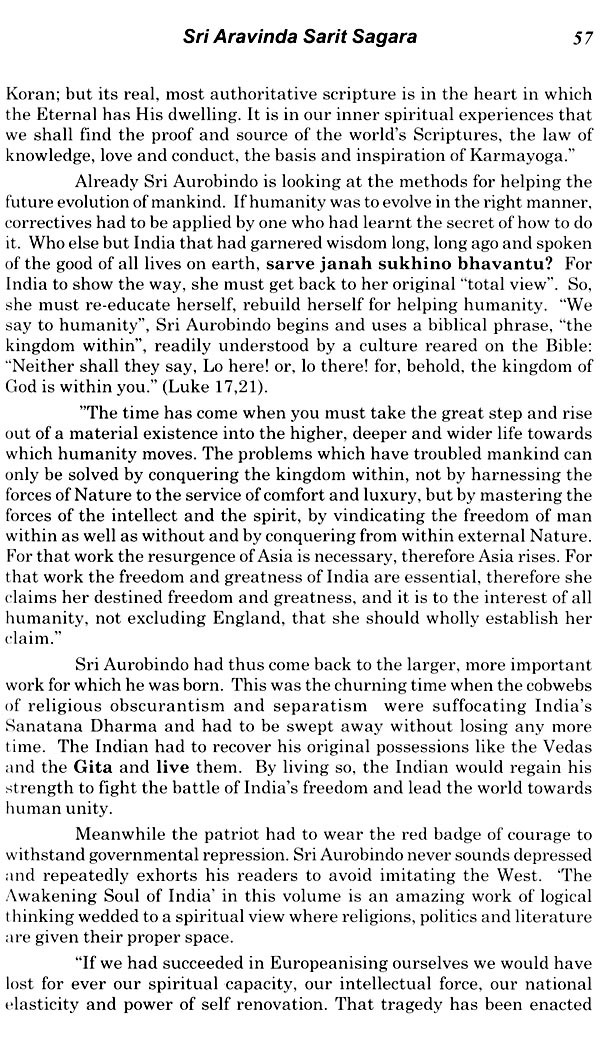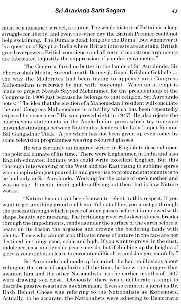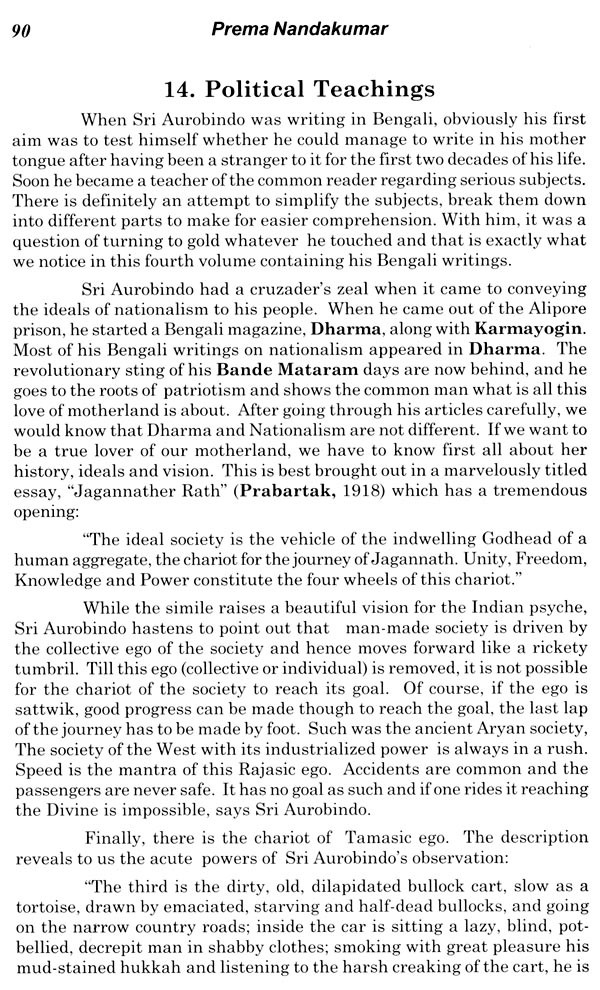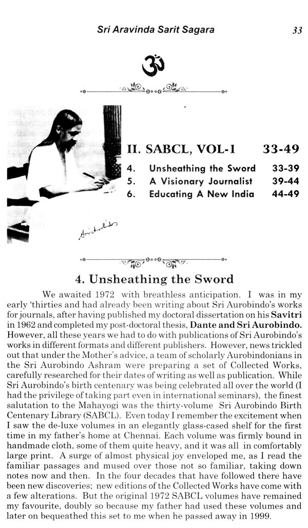 Altogether, Sri Aurobindo had spent fourteen years in England all by himself not meeting even his parents. The only relations he knew in the foreign land were his two brothers but each of them was busy in his own way. Astonishingly, he was not denationalised at all. He may have dressed as an Englishman but he thought as an Indian. As an L.C.S. probationer, he had begun to learn his mother tongue, Bengali. Obviously he was clear about his future allegiance: it would be to Indian culture, not the West. He indicates this in a poem which he wrote on leaving England. He speaks of the poems he had written, poems which were basically a recreation of the Western ambience, chiefly Greek. But now he was going away, probably for good. The concluding lines of the poem, 'Envoi' makes it clear how he is turning from the West to the East: