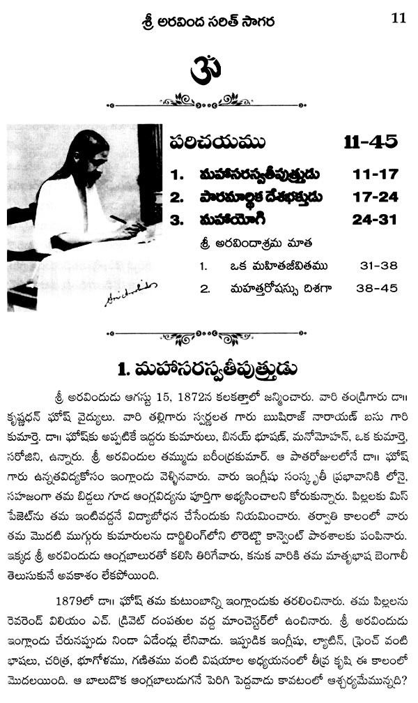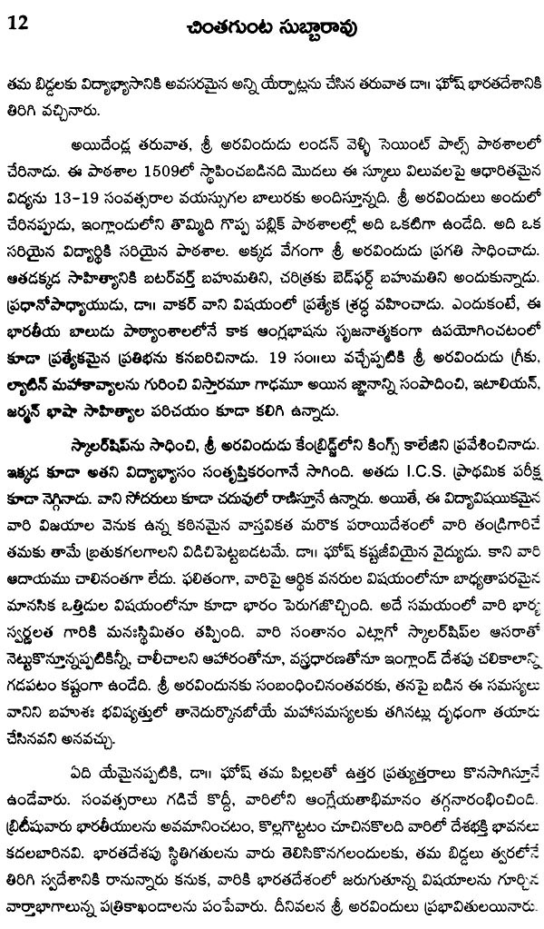 Sri Aurobindo was born on 15th August, 1872 at Calcutta. His father, Dr. Krishna Dhan Ghose was a physician. His mother was Swarnalata, daughter of Rishi Rajnarain Bose. Dr. Ghose already had two sons, Benoybhushan and Manomohan as also a daughter, Sarojini. Sri Aurobindo's younger brother was Barindra Kumar. Even in those distant days, Dr. Ghose had gone to England for higher education. He had been much anglicised and naturally wished for a complete English education for his children. At home he had engaged Miss Pagett to teach the children. Later, he sent his first three sons to the Loretto Convent School at Darjeeling. Here Sri Aurobindo was moving among English children and so was not exposed to his mother-tongue, Bengali.