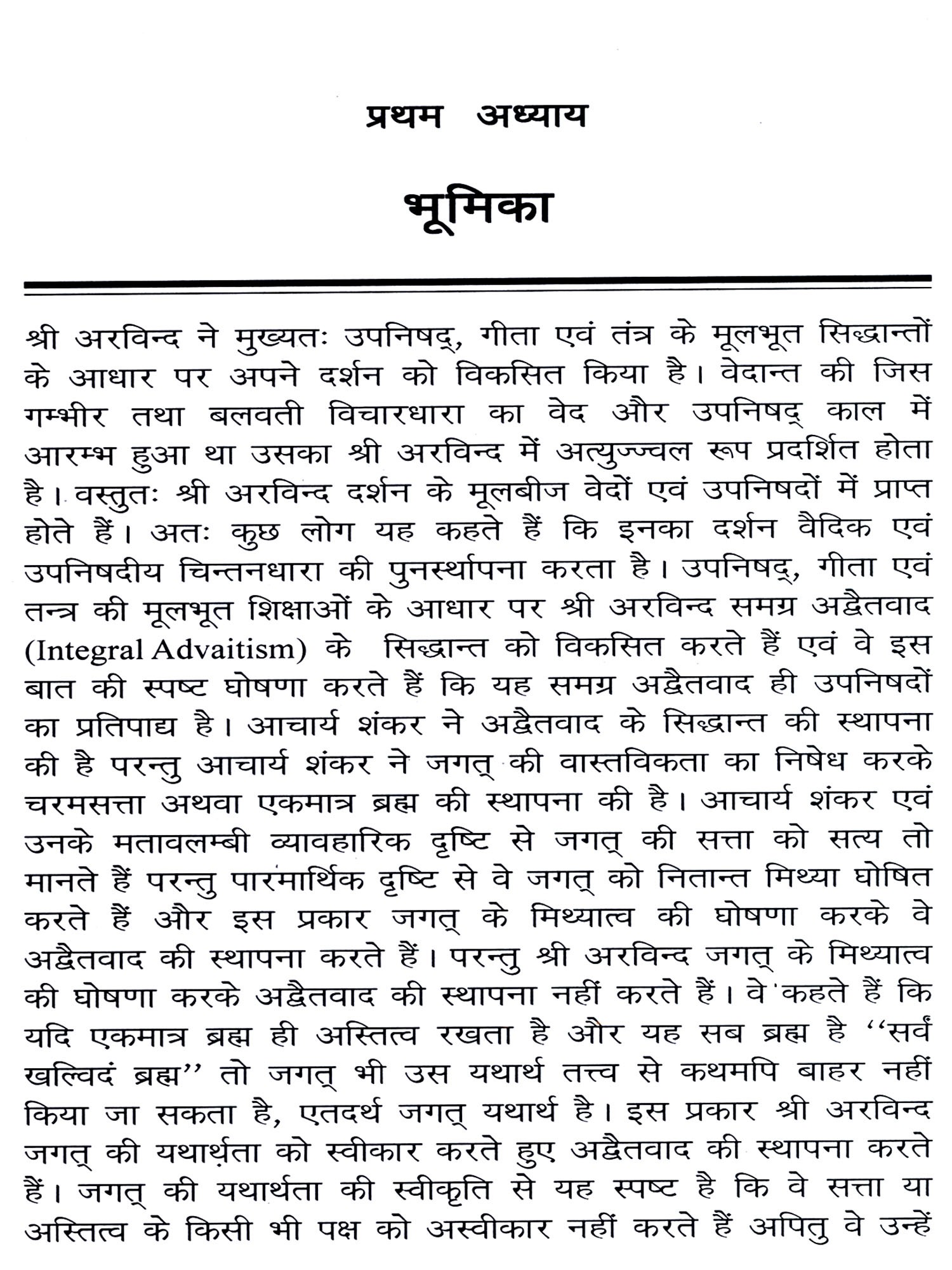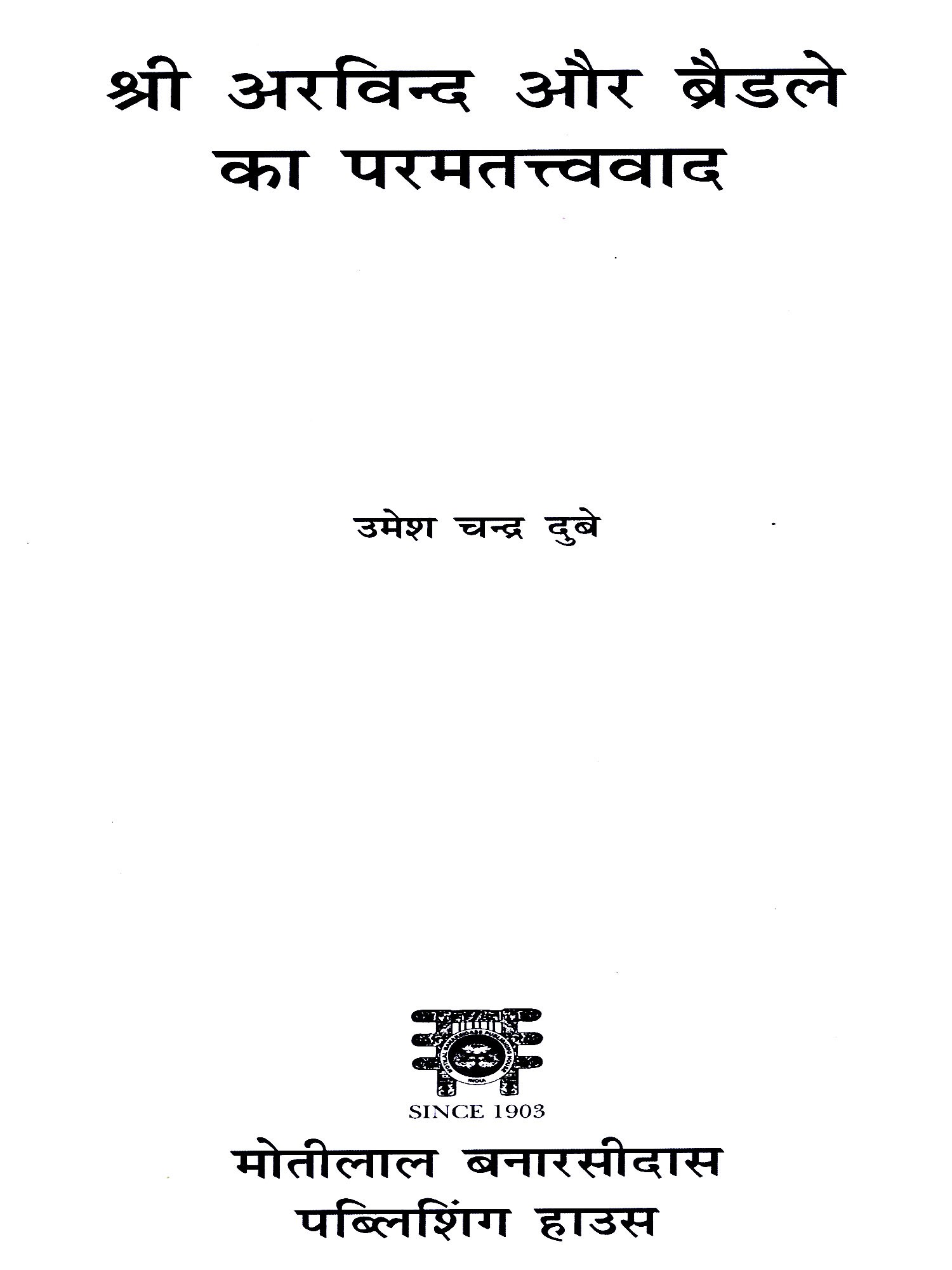 प्रस्तुत ग्रन्थ में श्री अरविन्द के समग्र अद्वैतवाद और ब्रैडले की तत्त्वमीमांसीय अवधारणा की विवेचना तथा समीक्षा परमतत्त्व के विशेष सन्दर्भ में की गई है। श्री अरविन्द और ब्रैडले क्रमशः भारत और पाश्चात्य जगत् की सुदीर्घ अध्यात्मवादी दार्शनिक परम्परा का प्रतिनिधित्व करते हैं। इन दोनों परम्पराओं में कुछ बातों में अत्यधिक साम्य तथा कुछ में मौलिक भेद है। श्री अरविन्द और ब्रैडले के दर्शन में ये स्पष्ट रूप से परिलक्षित होते हैं। लेखक ने इनके मुख्य सिद्धान्तों का विशद, गम्भीर और तर्कसंगत निरूपण तथा मूल्यांकन किया है। श्री अरविन्द के समग्र अद्वैतवाद, परमतत्त्व, अतिमन, जगत्, जीव, विकासवाद आदि तथा ब्रैडले के परमतत्त्व, बुद्धि, त्रुटि, आभास, तर्क-प्रणाली आदि तत्त्वों और सिद्धान्तों की लेखक ने सरल, सुबोध एवं प्रामाणिक व्याख्या प्रस्तुत की है। इसके साथ ही साथ इन दोनों दार्शनिकों के विशेष योगदान, उनकी समानताओं तथा भेद का भी स्पष्ट एवं प्रामाणिक प्रतिपादन किया है।