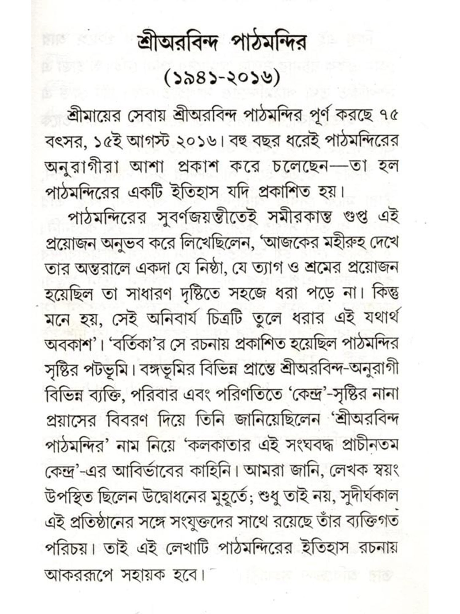 শ্রীঅরবিন্দ, শ্রীমা ও শ্রীঅরবিন্দ আশ্রম: Sri Aurobindo, Srima O Sri Aurobindo Ashram (A Short Description) Bengali