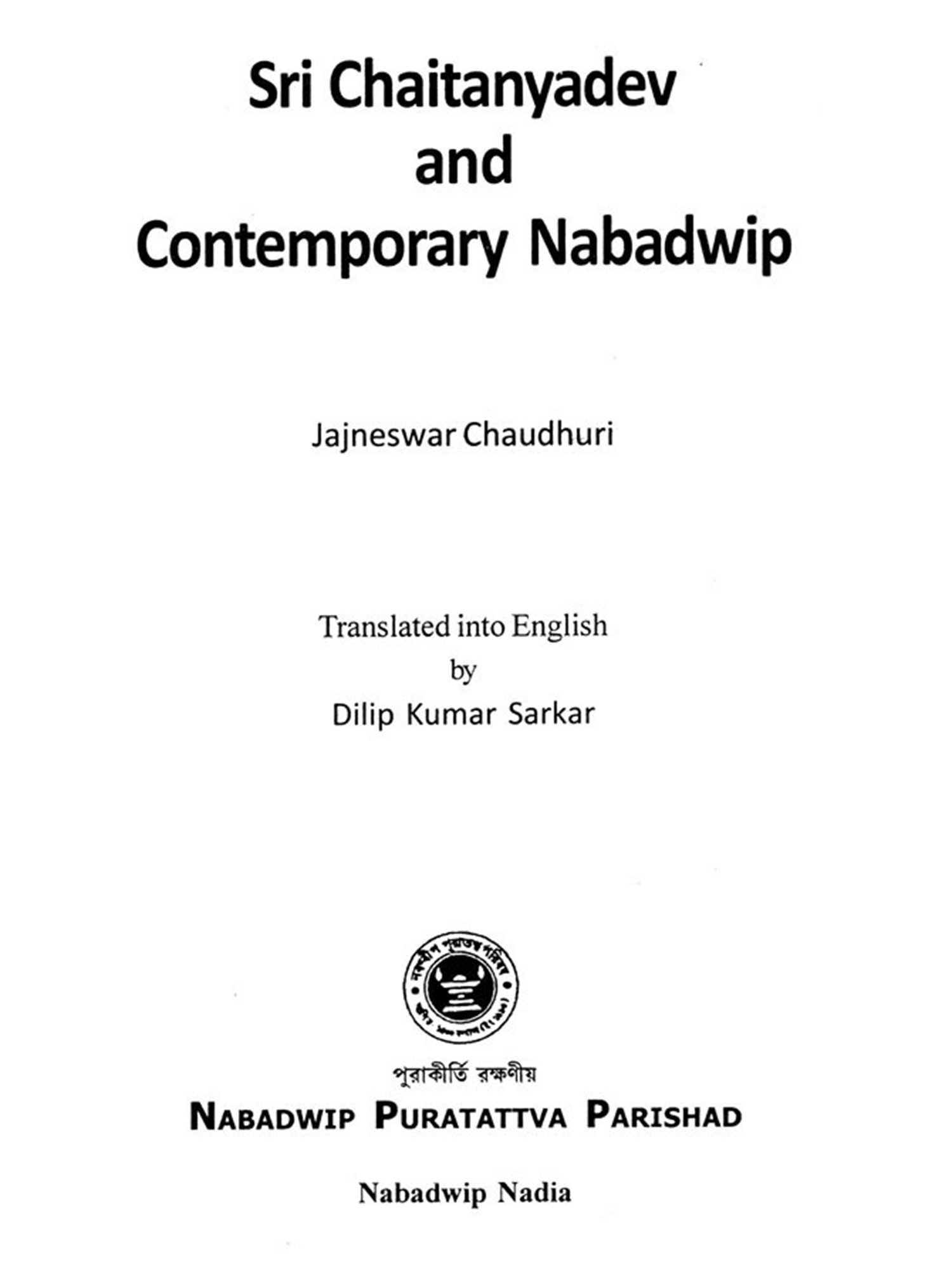 My greatly beloved friends and admirers Sri Jibankanai Saha, Sri Santiranjan Deb and Sri Nabendu Saha approached me with a request to translate the Bengali Version of Sri Jajneswar Chaudhuri's book 'Sri Chaitanyadev and Contemporary Nabadwip'. As I had never written any book in English earlier I was in grave doubt whether I would be capable of such a huge responsibility. Sometime later during a conversation with Sri Jajneswar Chaudhuri in a meeting of the Nabadwip Puratattva Parishad a reference was made of the book and Sri Chaudhri himself encouraged me to undertake this responsibility. Coaxed by my friends and well wishers I although bent with age and falling health, set myself to the stupendous task of trans-lating the book into English. I was in great apprehension whether I would be able to complete. The task, however by the grace of God, I have succeeded in achieving the goal. The book is now being in print. The labour and pain that I have suffered will be fruitful if the book can satisfy the readers. Let me hope that the hopes and aspirations of the authorities of the Nabadwip Puratattva Parishad will be fulfilled.