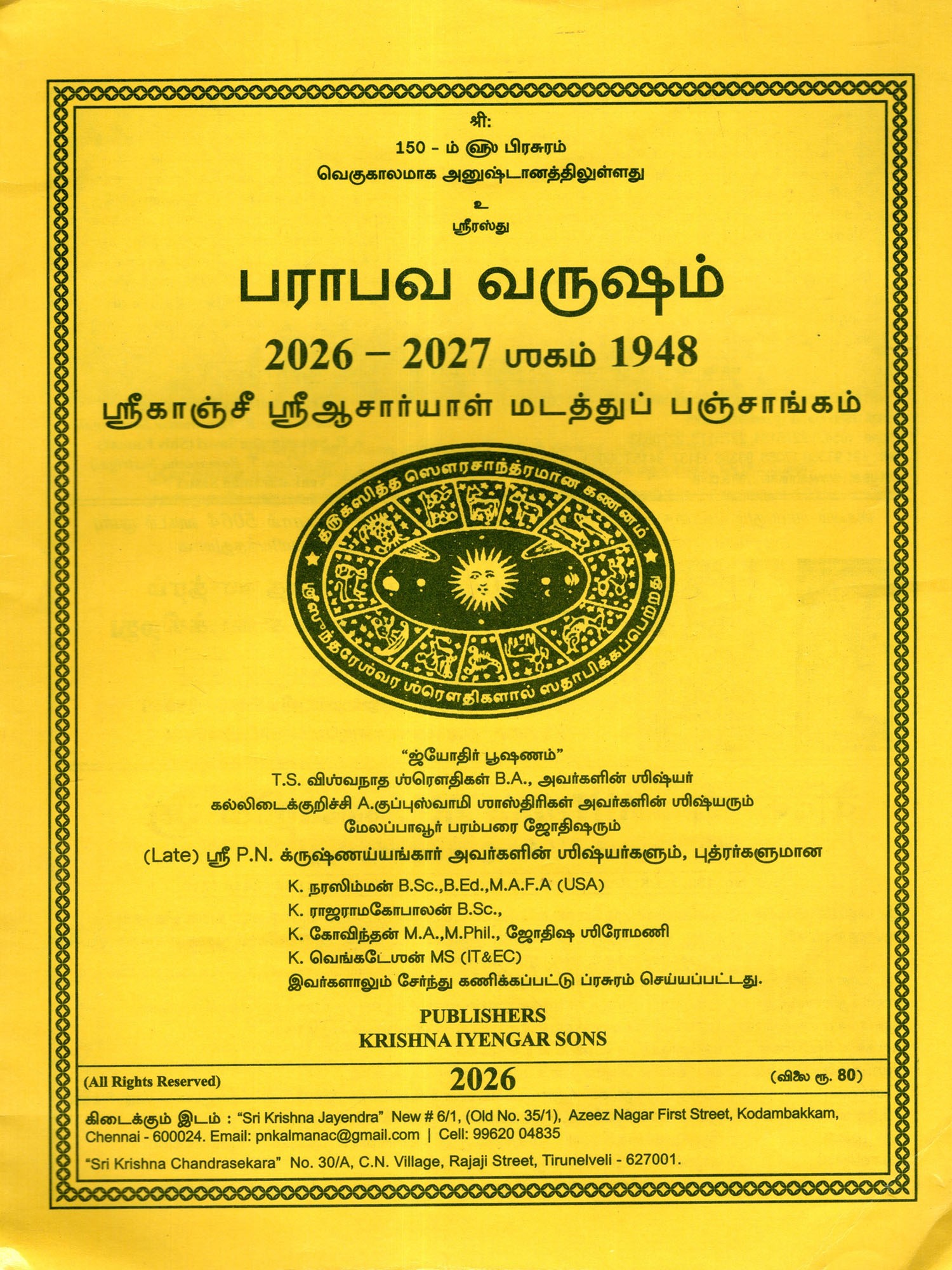 பராபவ வருஷத்திய வாசன் சுத்த திருக்கணித பஞ்சாங்கம்: Parabava Varushathiya Vasan Sutha Thirukkanidha Panchangam 2026 - 2027 (Tamil)