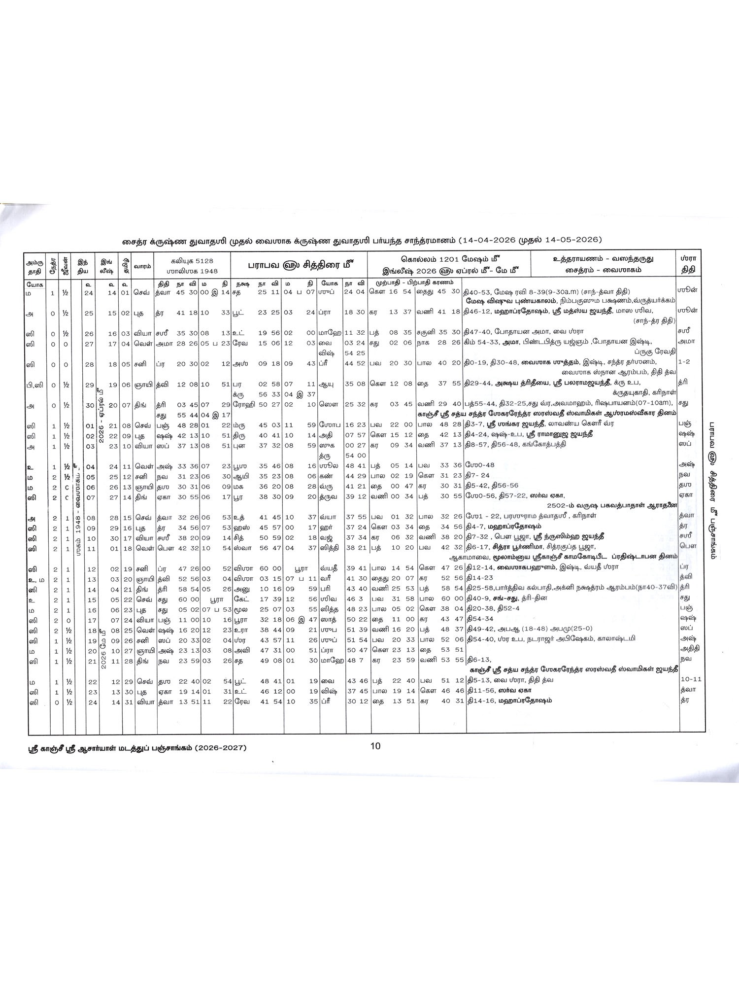 அசல் 28-நெ.பராபவ வருஷ சுத்த வாக்கிய பஞ்சாங்கம்: Asal 28-No.Parabava Varusha Suttha Vakkiya Panchangam 2026 - 2027 (Tamil)