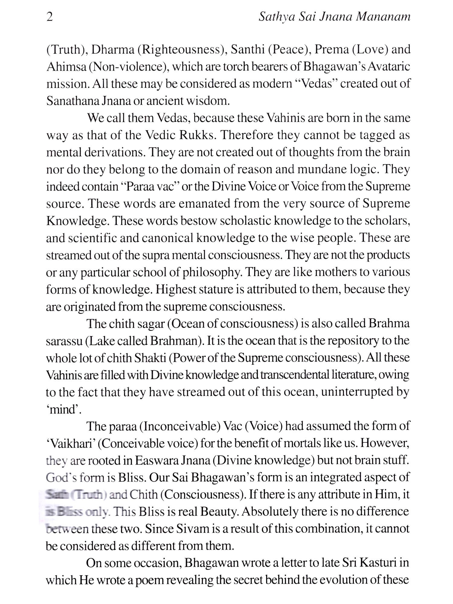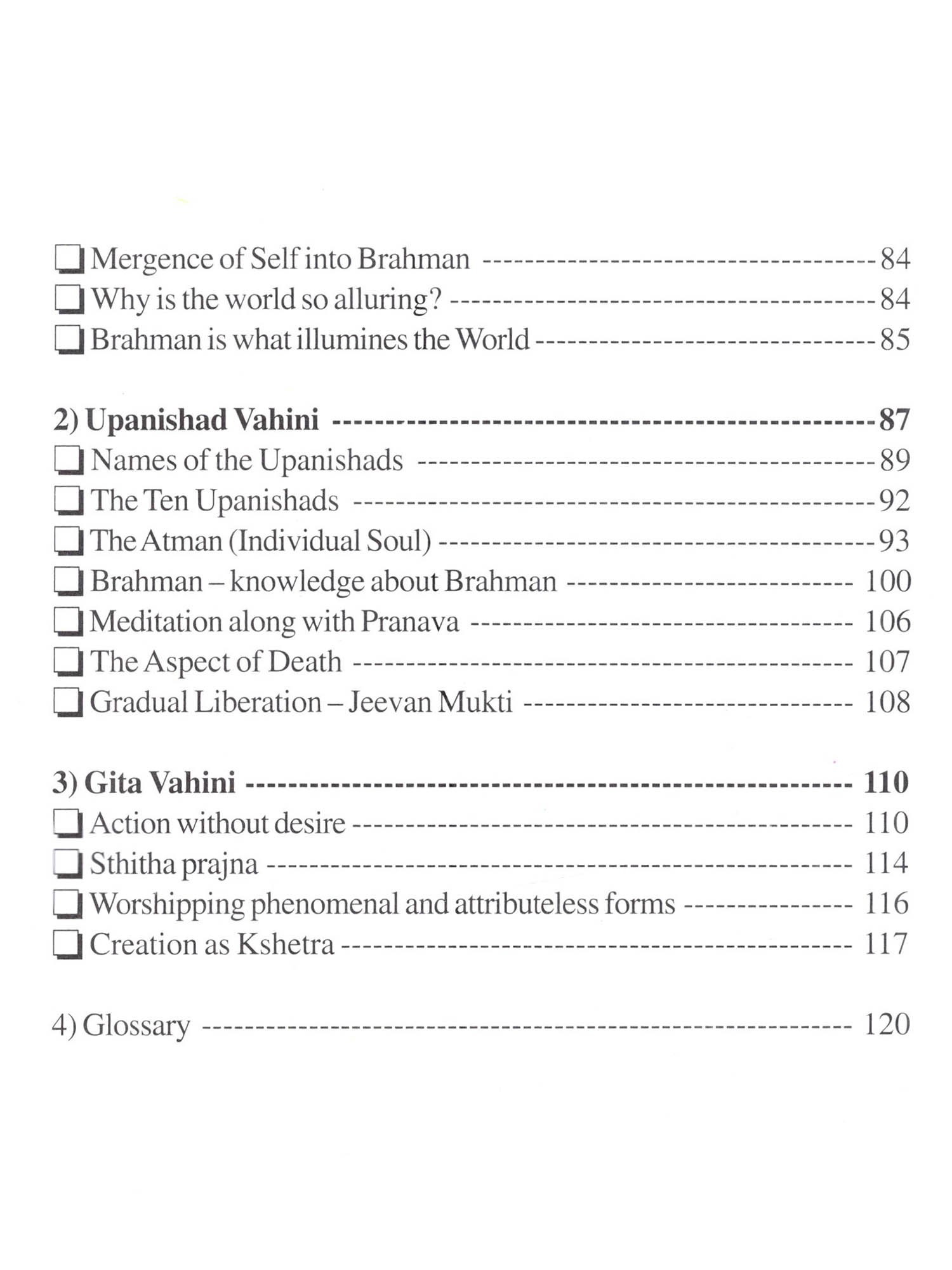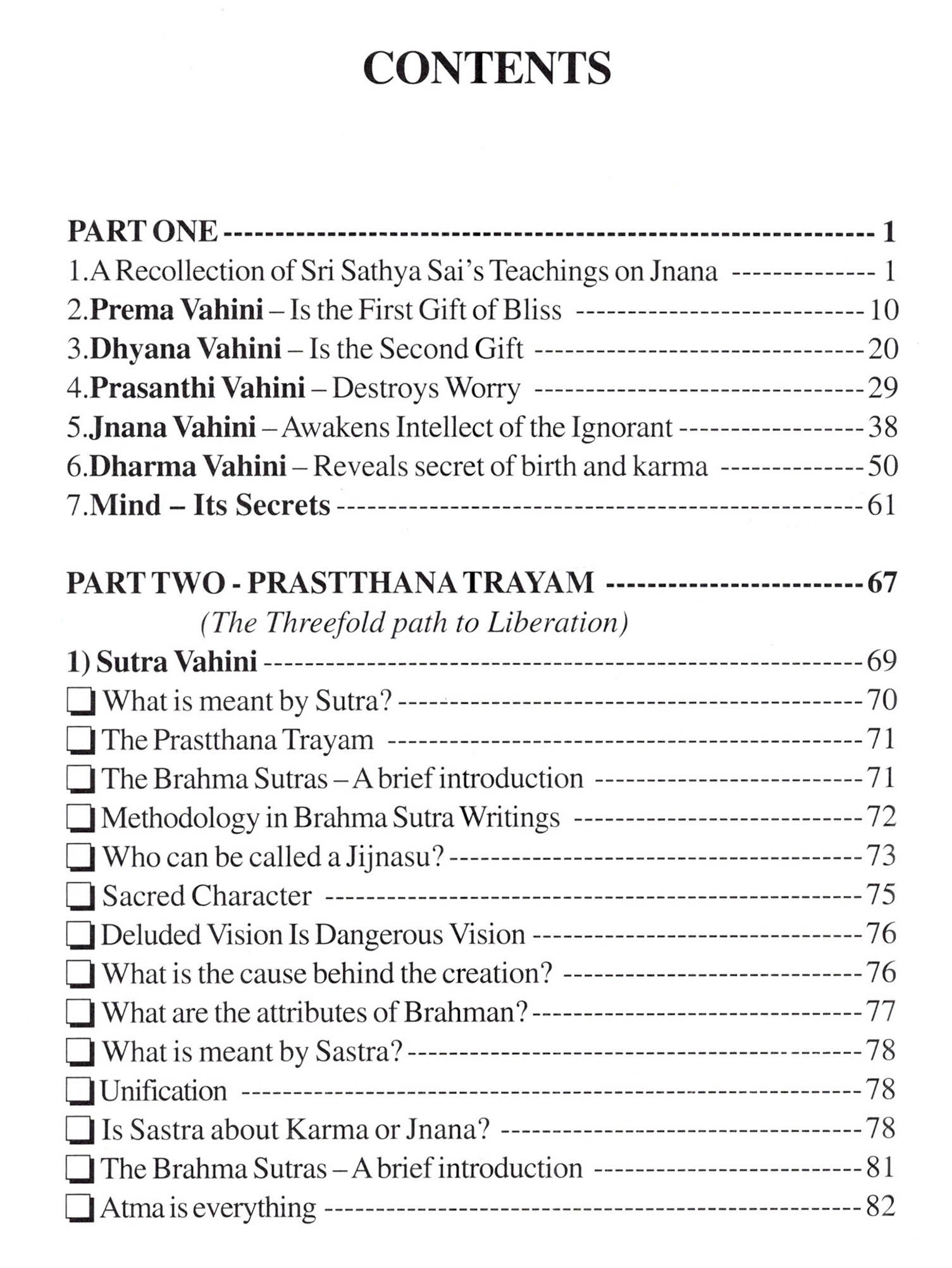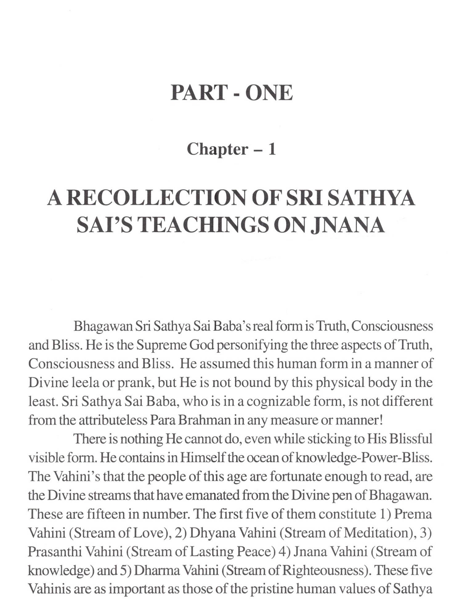 The Vedic Literature is undoubtedly the most comprehensive and convincing of all philosophies of the world with regard to Universe, its creation, sustenance and dissolution; and on the teachings pertaining to Jnana and Moksha. This book is a concise concoction of explanations provided by Bhagawan Baba on aspects of knowledge and liberation through various 'Vahinis'. This compilation will surely help to clarify doubts on these aspects lingering in the erudite minds