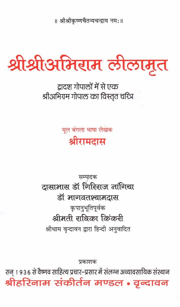 श्रीश्रीअभिराम लीलामृत: Sri Sri Abhiram Lilamrit (Detailed Character of Sri Abhirama Gopala, One of the Twelve Gopalas)