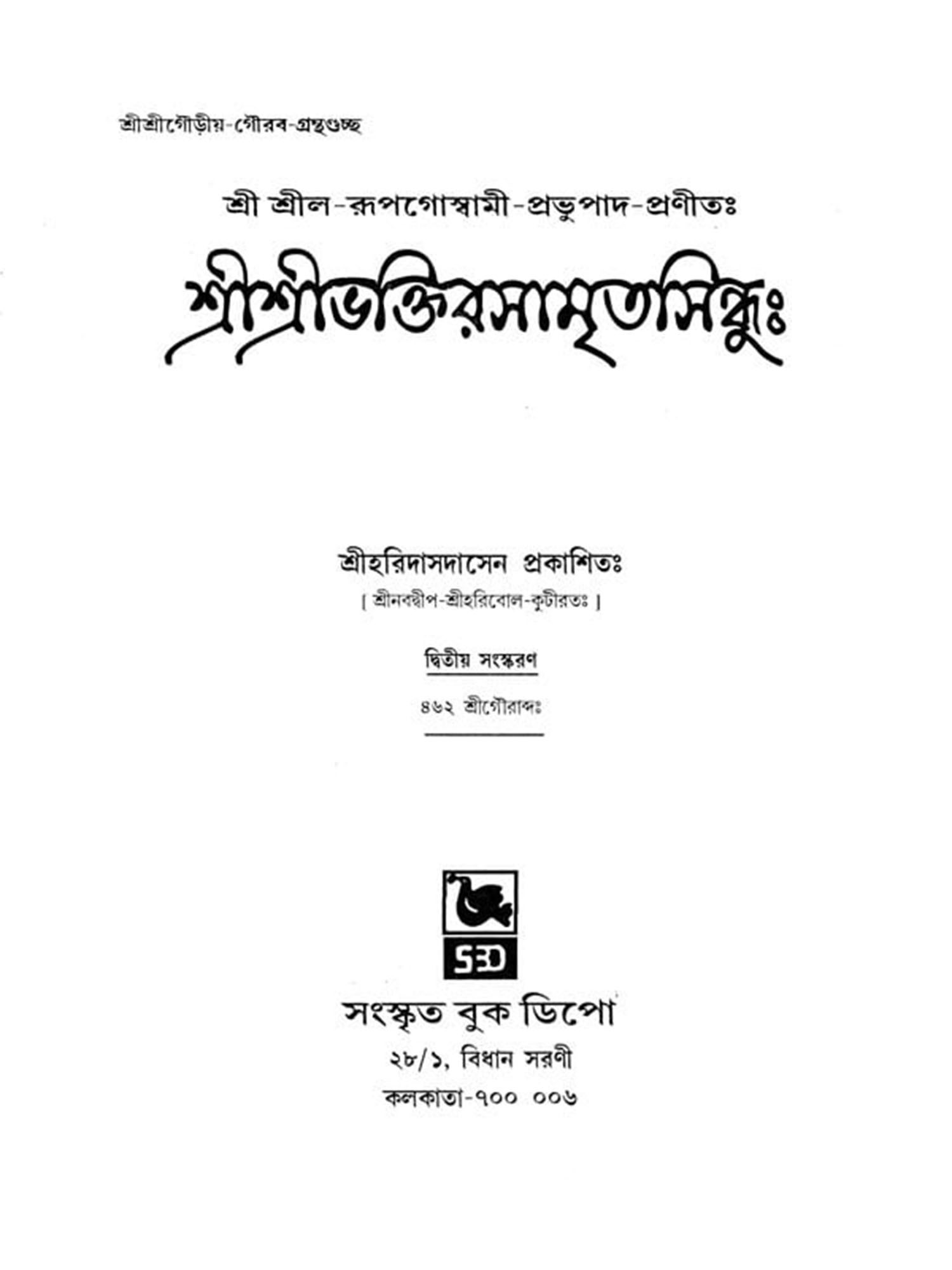 শ্রীশ্রীরাধারসসুধানিধিঃ Sri Radha Rasa Sudha Nidhi (Srila Prabodhananda Sarasvati Gosvamipada-Virachita in Bengali)