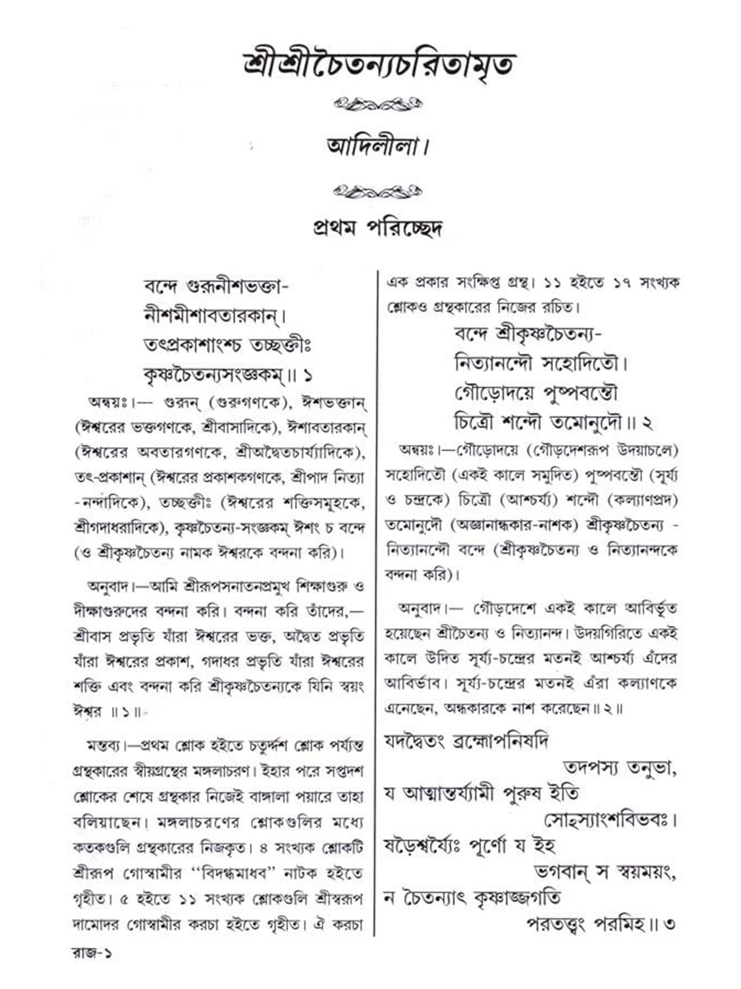 Sri Sri Chaitanya Charitamrita in Bengali (Adilila-Mool)