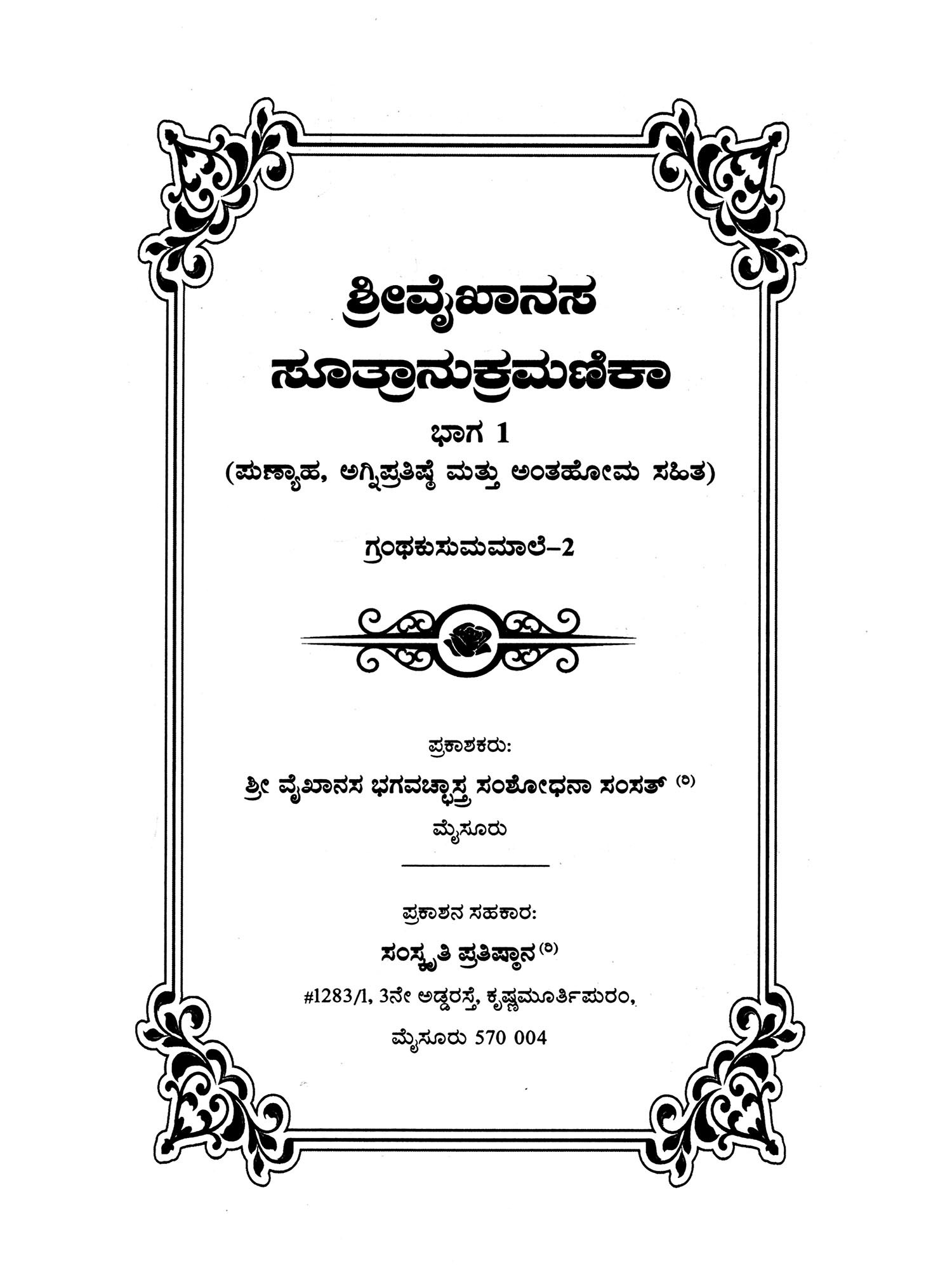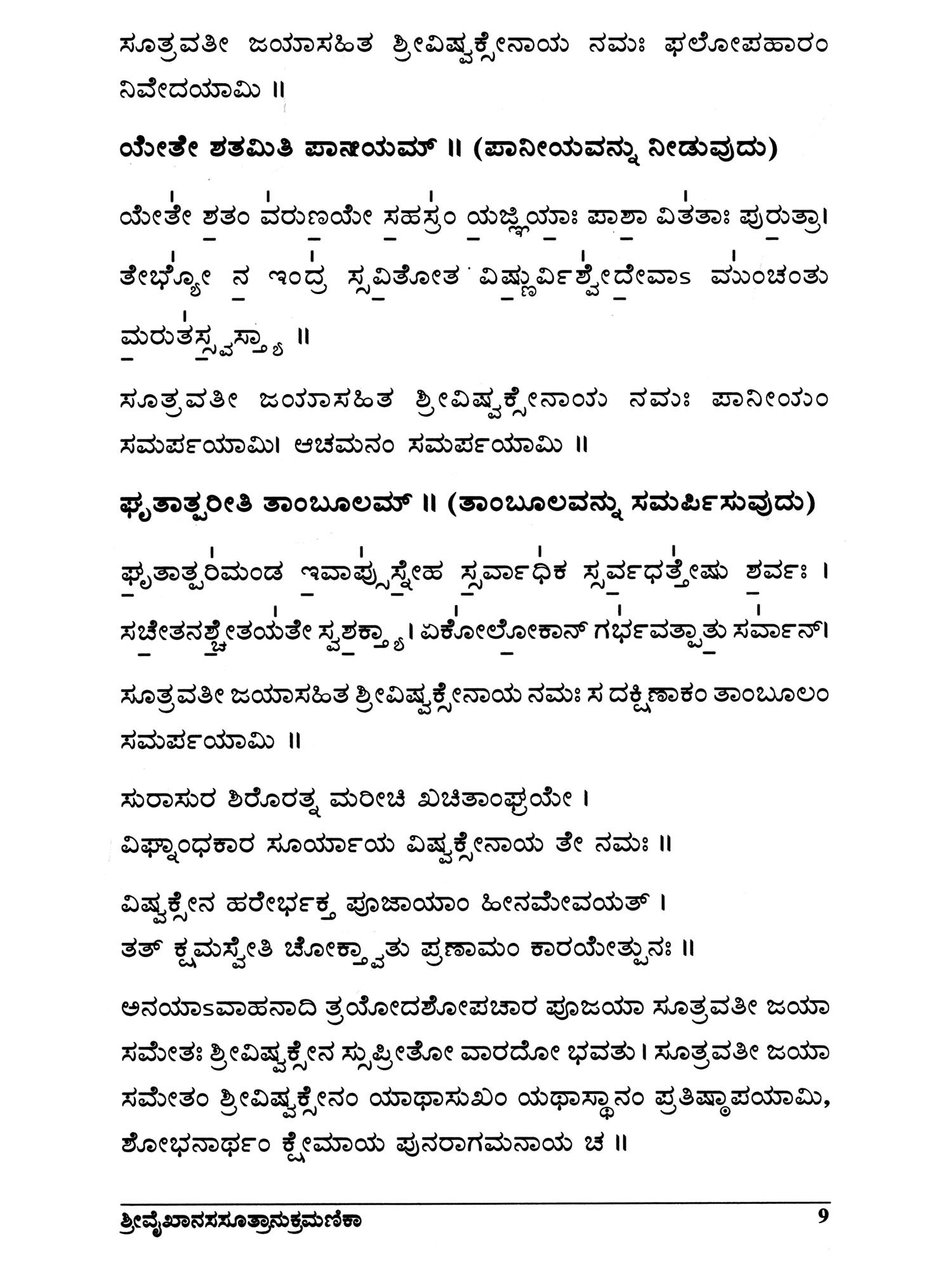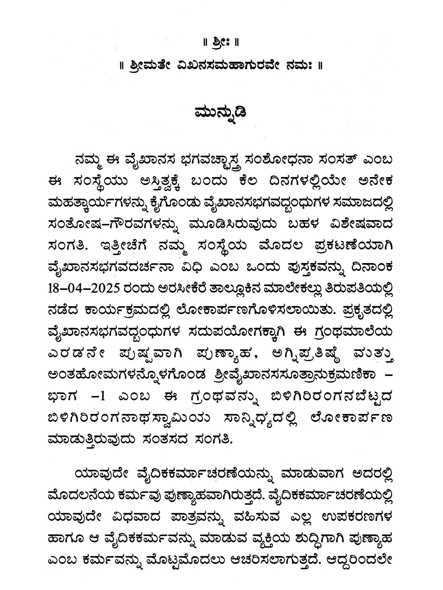ಶ್ರೀ ವೈಖಾನಸ ಭಗವದರ್ಚನಾ ವಿಧಿ:- Sri Vaikhanasa Bhagavadarchana Vidhi (Part 1 in Kannada)