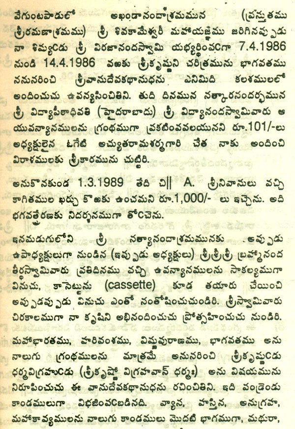 శ్రీ కృష్ణ వచనామృతం: Shri Krishna Vachanamrita (Telugu)