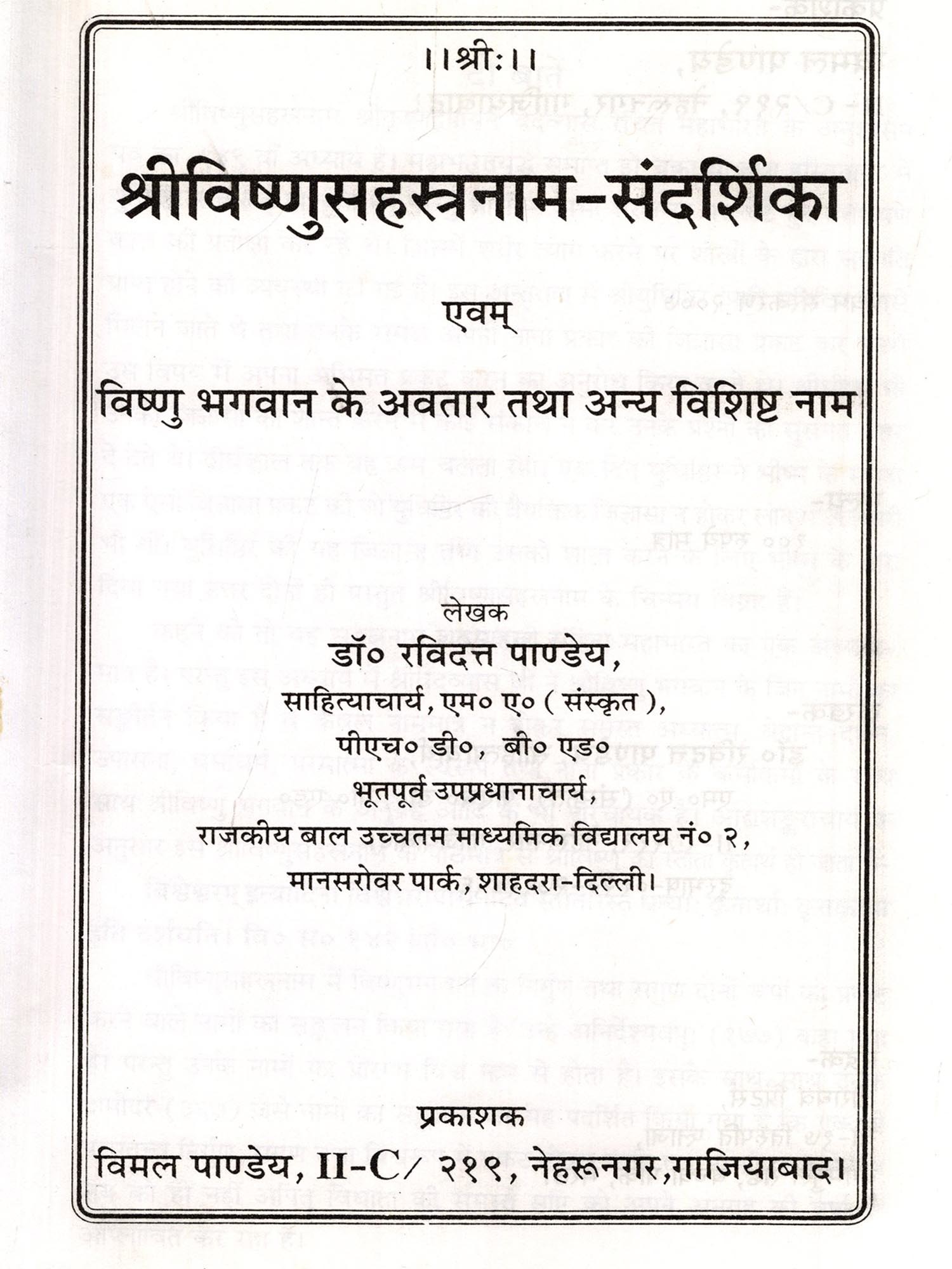 श्रीविष्णुसहस्रनाम-संदर्शिका एवम् विष्णु भगवान के अवतार तथा अन्य विशिष्ट नाम- Sri Vishnu Sahasranama-Sandarshika and the Incarnations of Lord Vishnu and Other Distinctive Names (An Old and Rare Book: Only 1 Quantity Available)