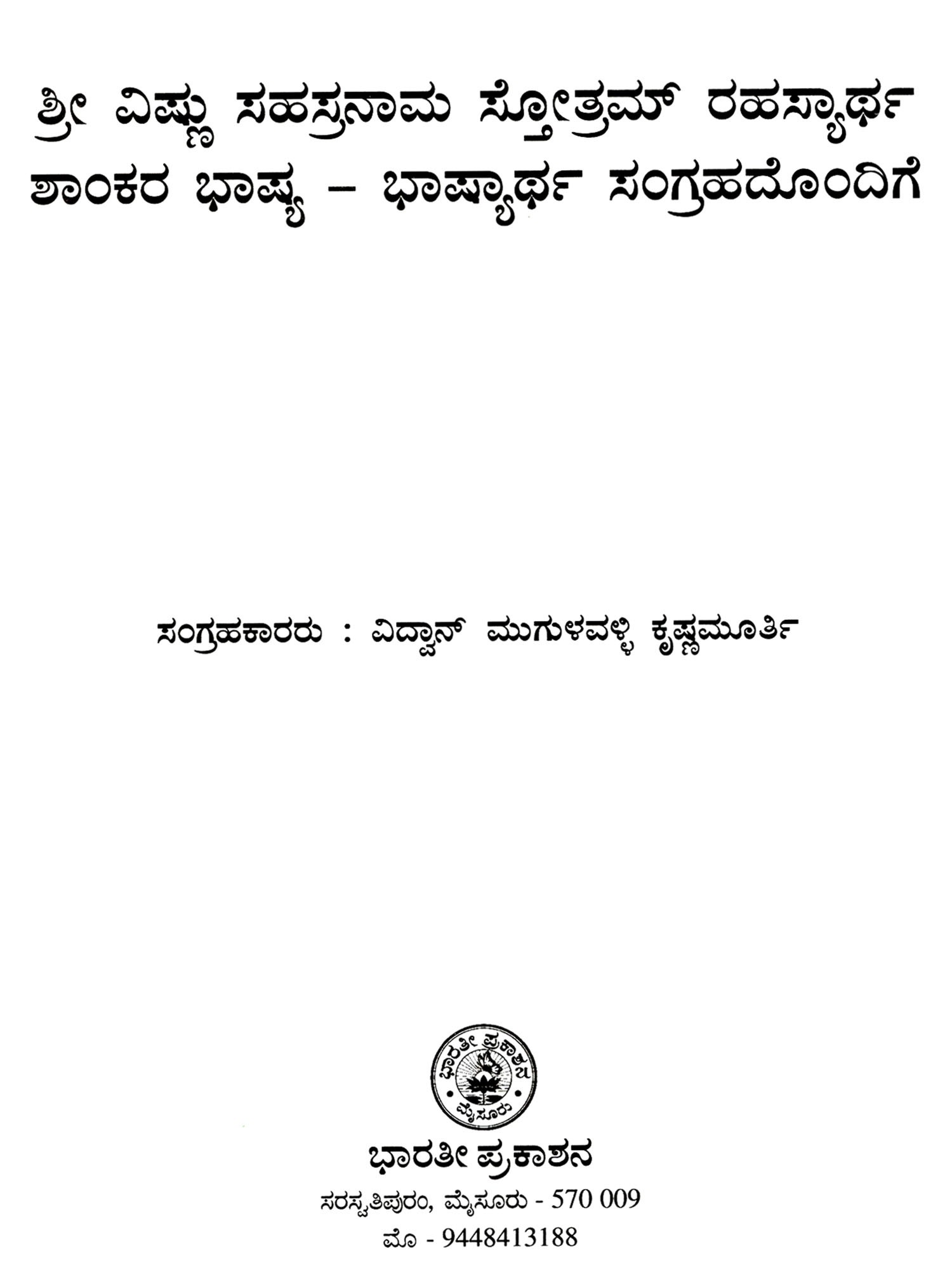 ವಿಷ್ಣುಸಹಸ್ರನಾಮಸ್ತೋತ್ರಮ್- Vishnu Sahasranama Stotram (With Sri Vishnu Sahasranama Prakashika in Kannada)
