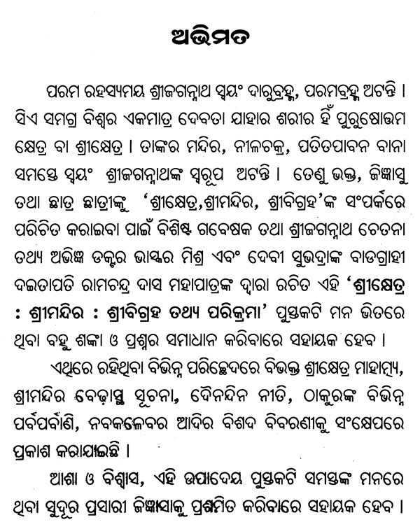 ଶ୍ରୀମନ୍ଦିର ପ୍ରଶାସକଙ୍କ ଅନୁଭୂତିରେ ଶ୍ରୀଜଗନ୍ନାଥ- Shree Mandir Prashasakanka Anubhutire Shree Jagannatha (Oriya)