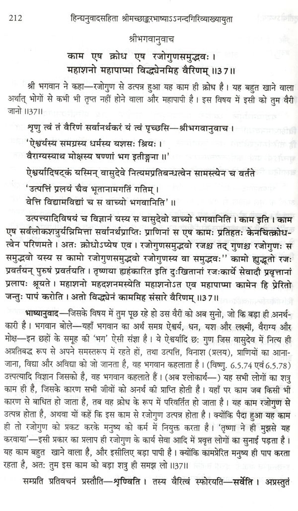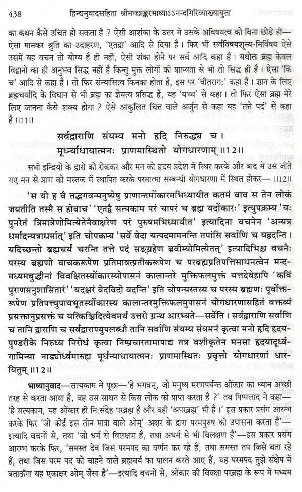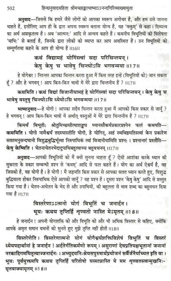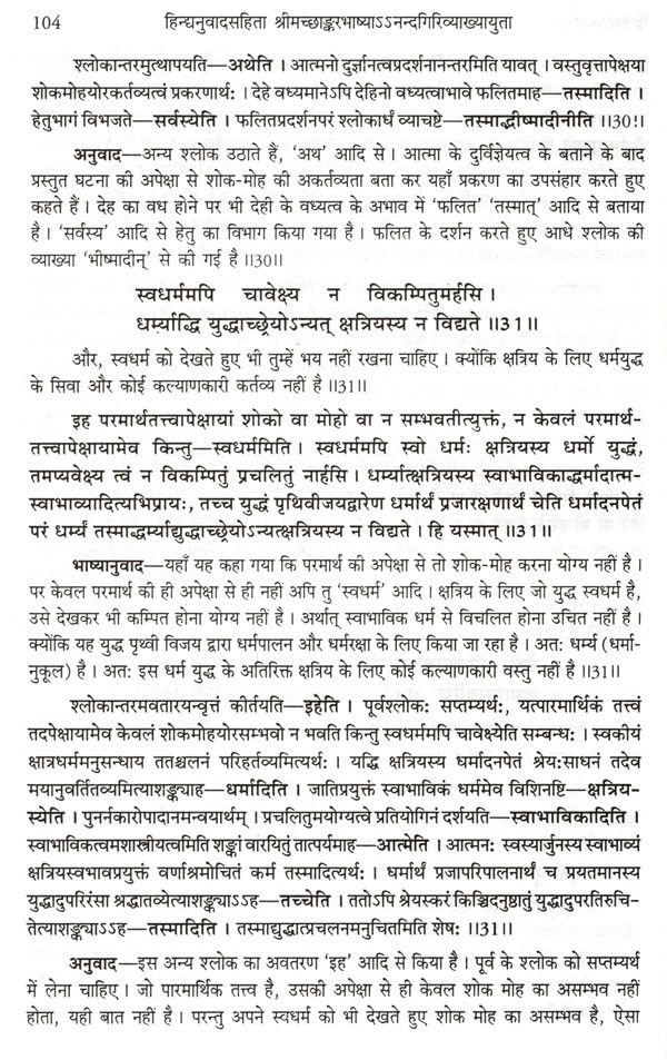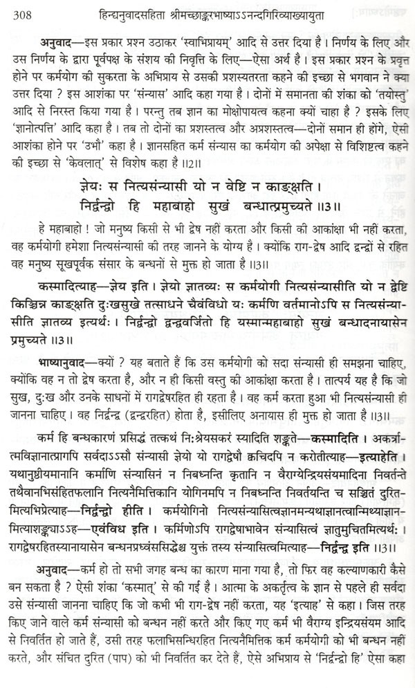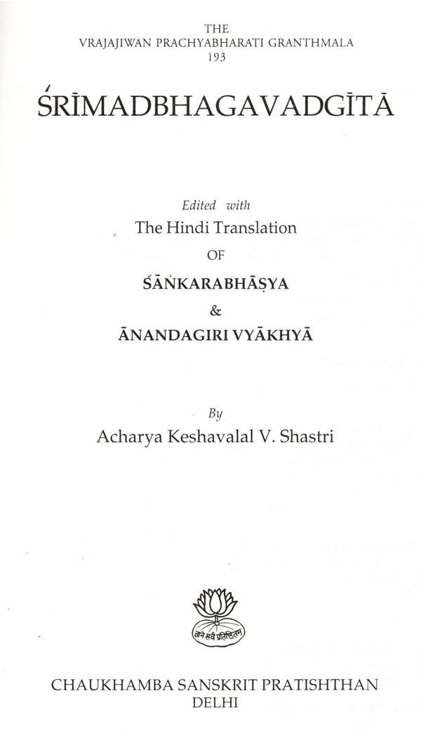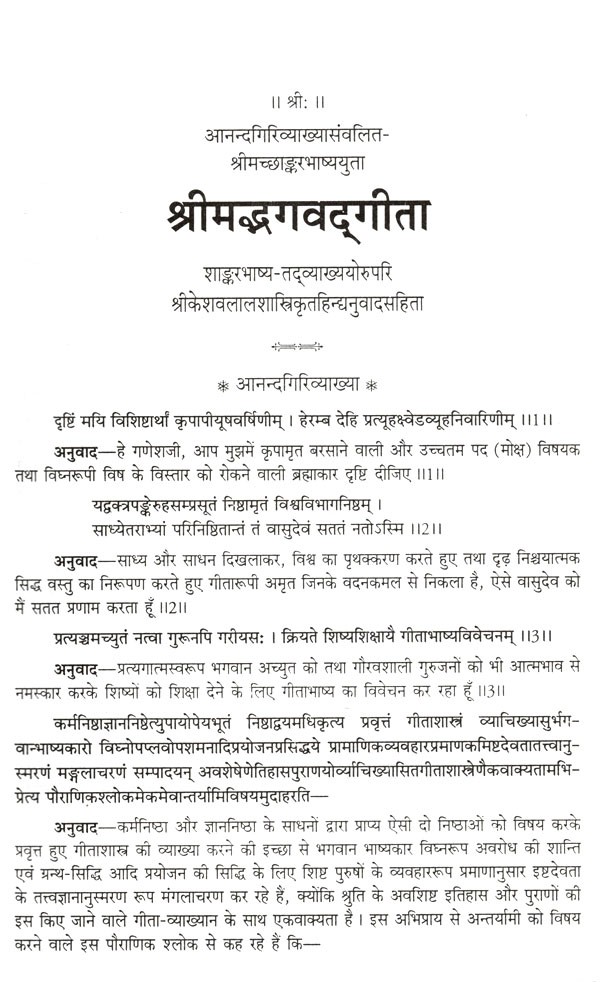 श्रीमद्भगवद्गीता: Srimad Bhagavad Gita (The Hindi Translation of Sankarabhasya and Anandagiri Vyakhya)