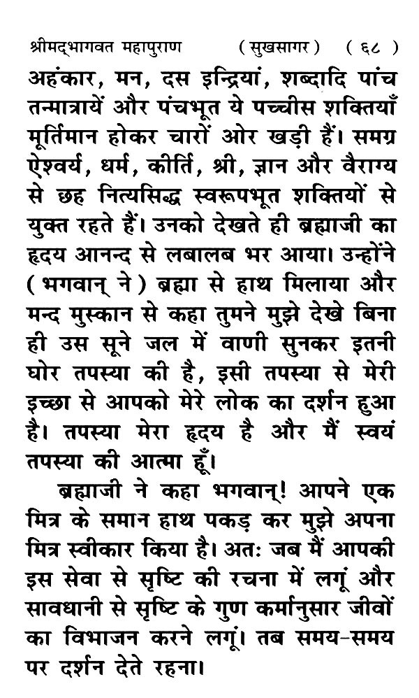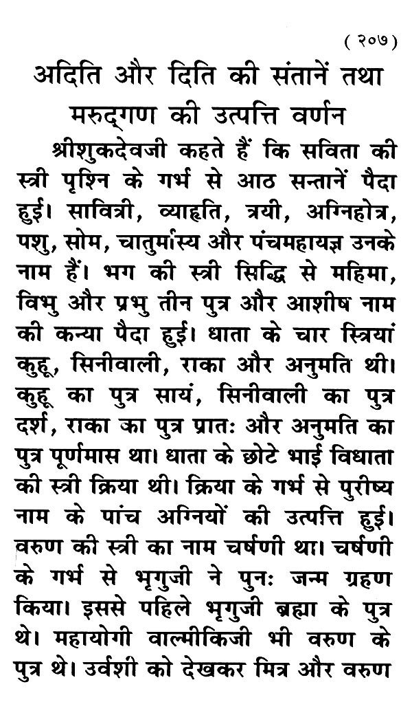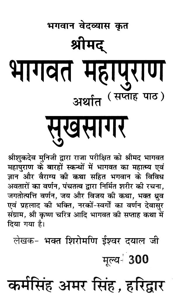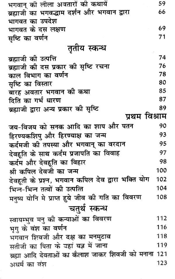 Shrimad Bhagwat to King Parikshit by Shri Shukdev Muniji > 'The greatness of Bhagwat in the twelve chapters of Mahapuran and the tales of knowledge and detachment, along with the description of the various incarnations of God, the creation of the body made of the five elements, the description of the creation of the world, the story of Jai and Vijay, the devotion of devotees Dhruva and Prahlad, the description of hells and heavens, the war between gods and demons, the character of Shri Krishna etc. are given in the Saptah Katha of Bhagwat.