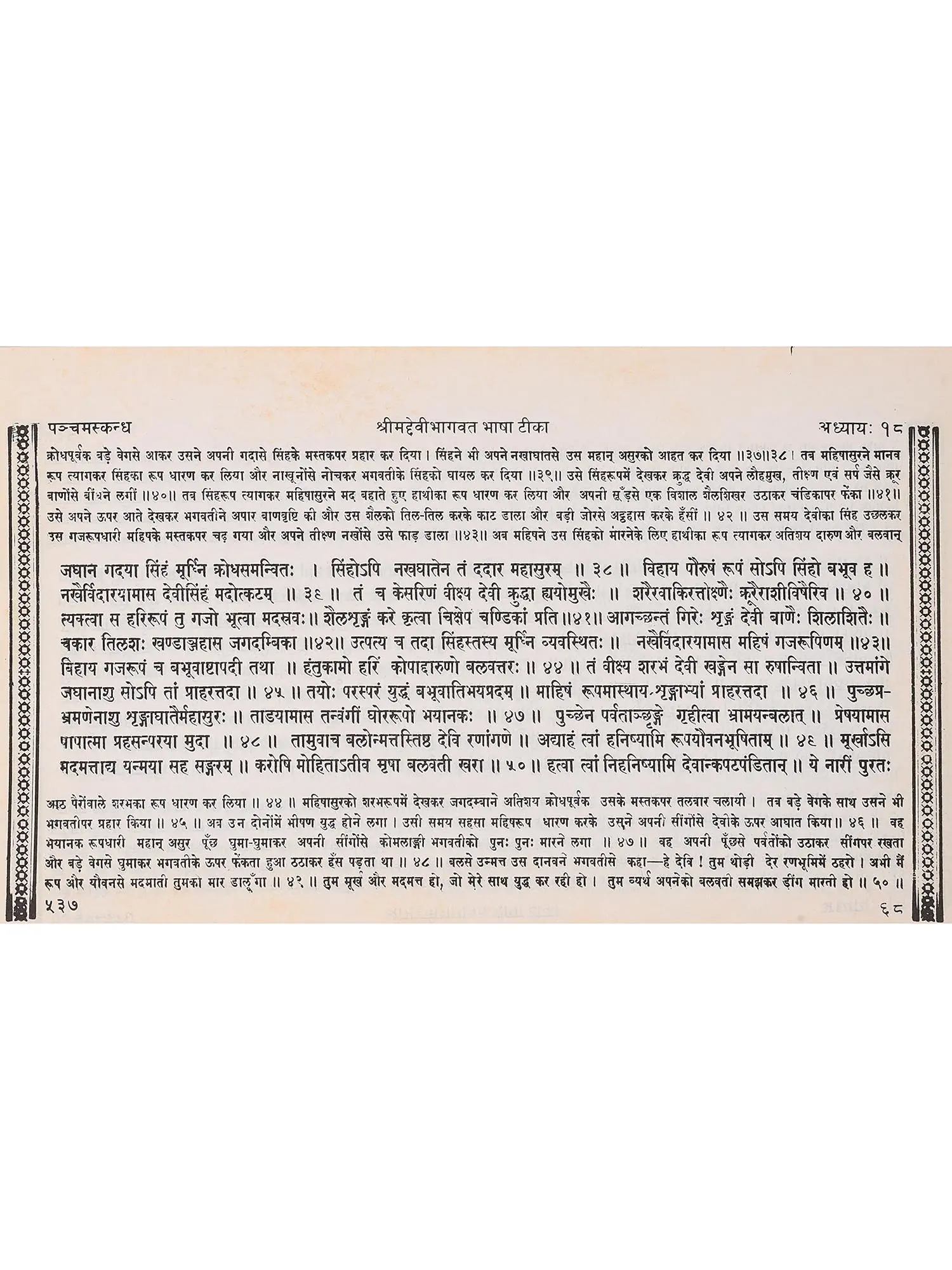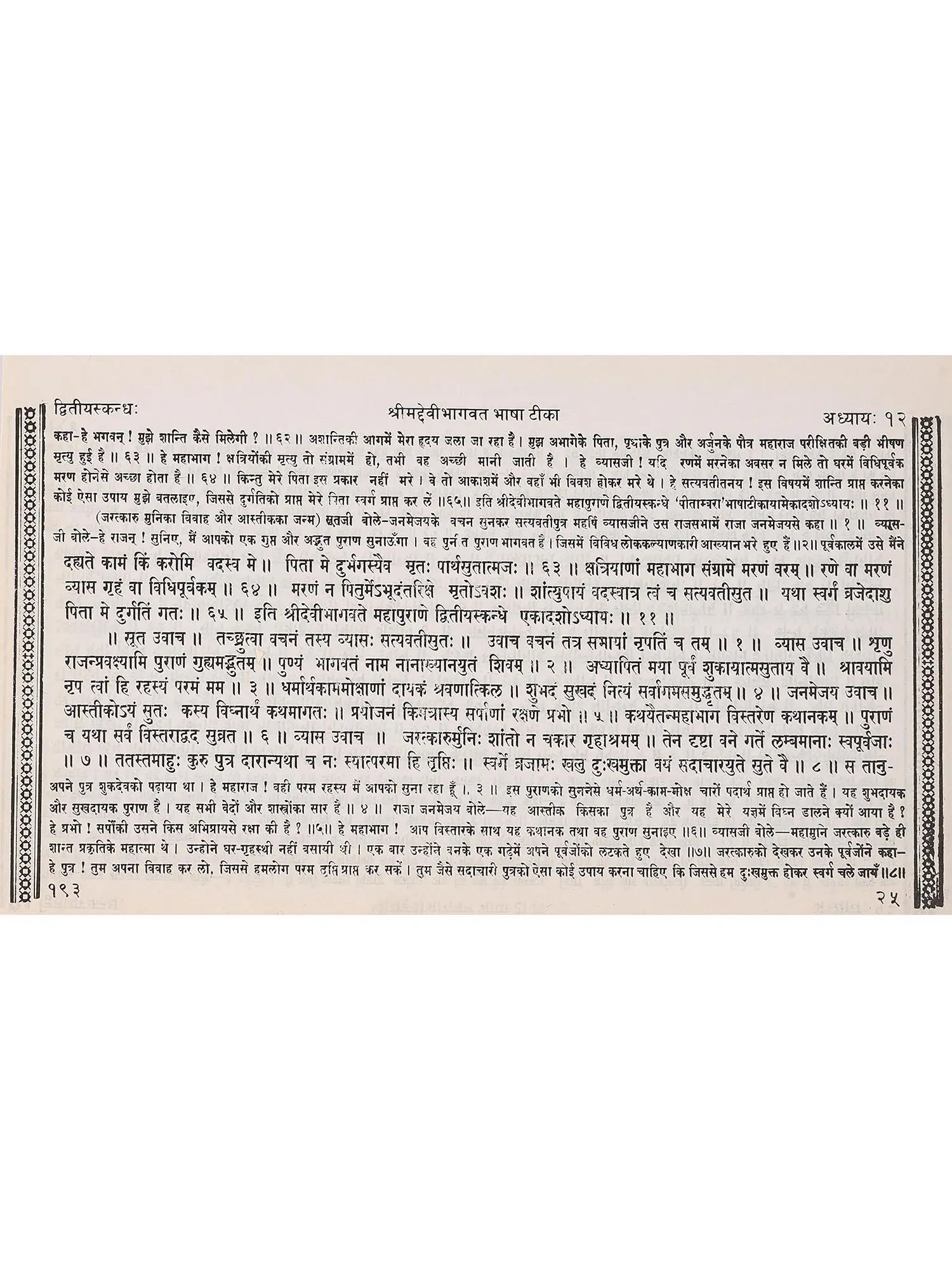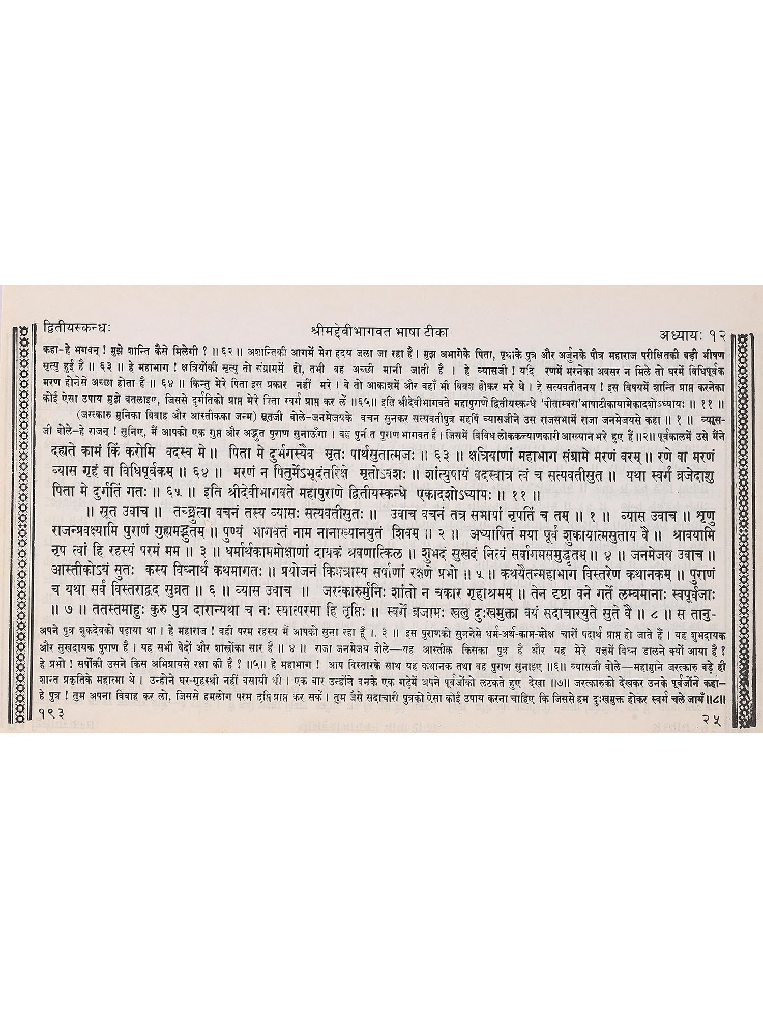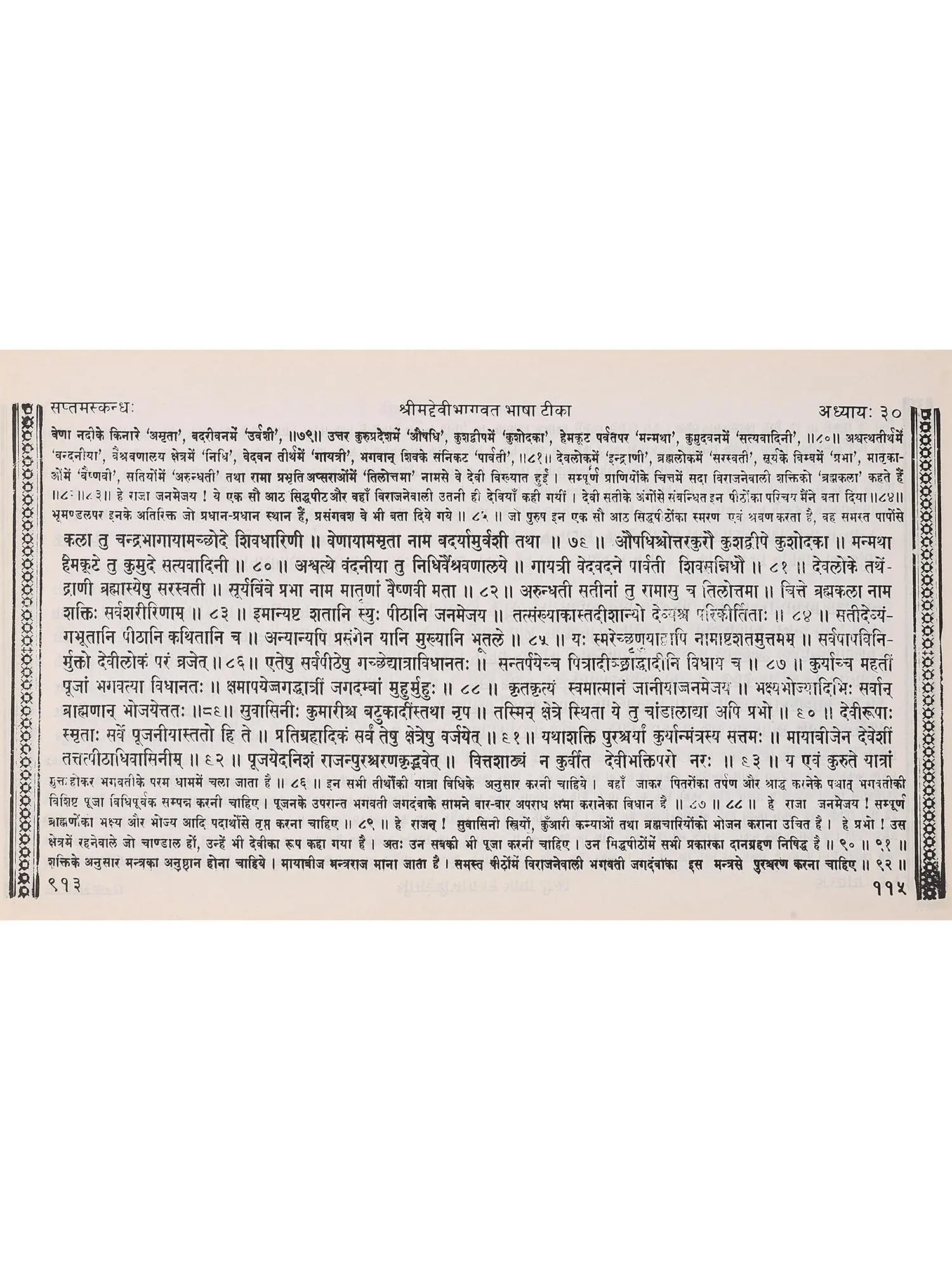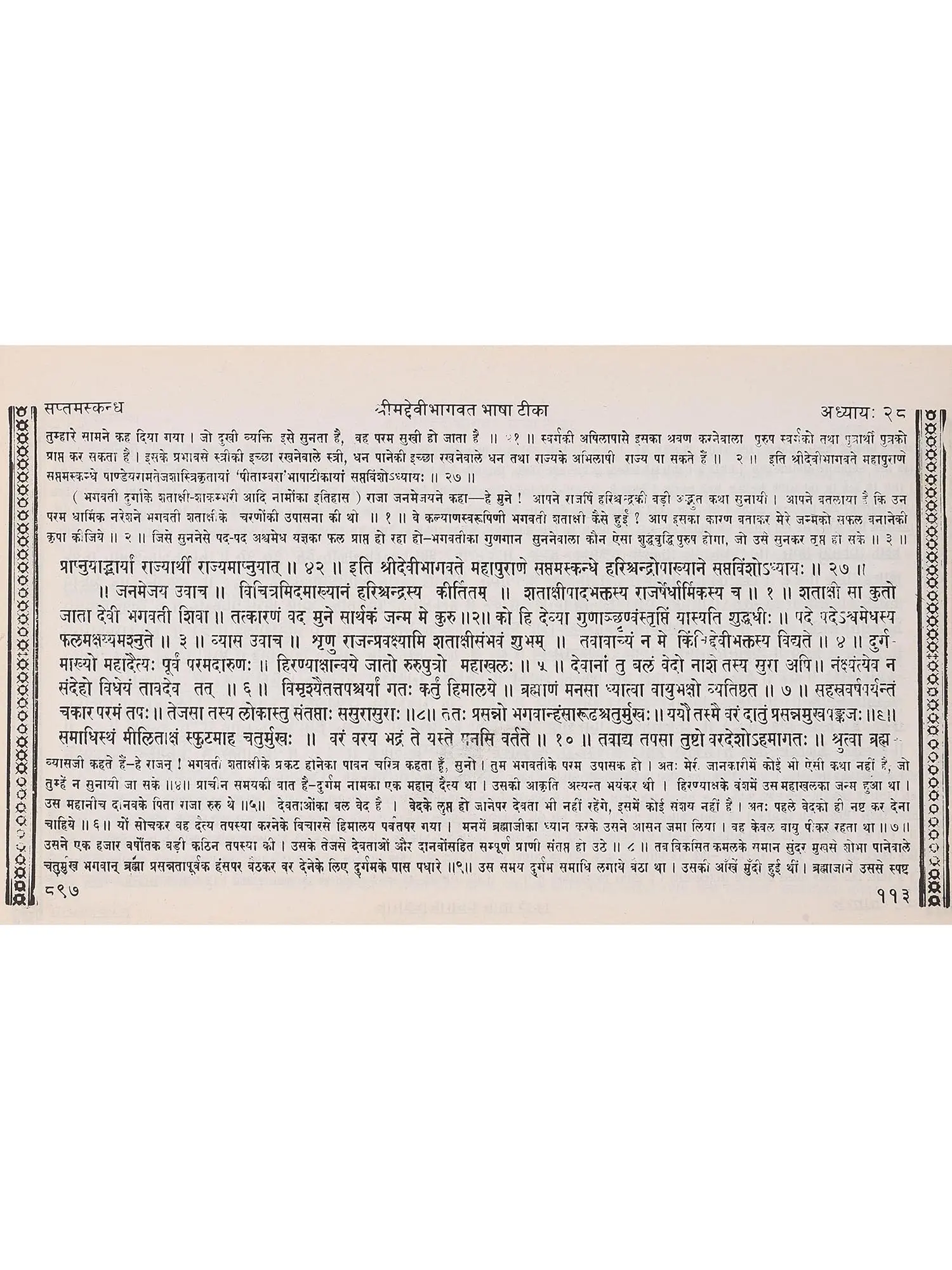 श्रीमद्देवीभागवतम् भाषाटीकासहितम्- Srimad Devi Bhagavatam with Language Commentary (Loose Leaf Edition: An Old and Rare Book)