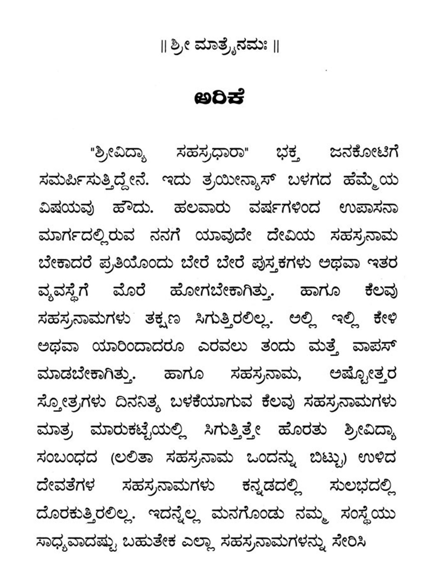 ಶ್ರೀ ಲಲಿತ ಸಹಸ್ರನಾಮ ಸ್ತೋತ್ರ ಶ್ರೀ ಲಲಿತಾತ್ರಿಶತಿ ಸ್ತೋತ್ರ: Sri Lalita Sahasranama Stotra Sri Lalitarishati Stotra (Kannada)