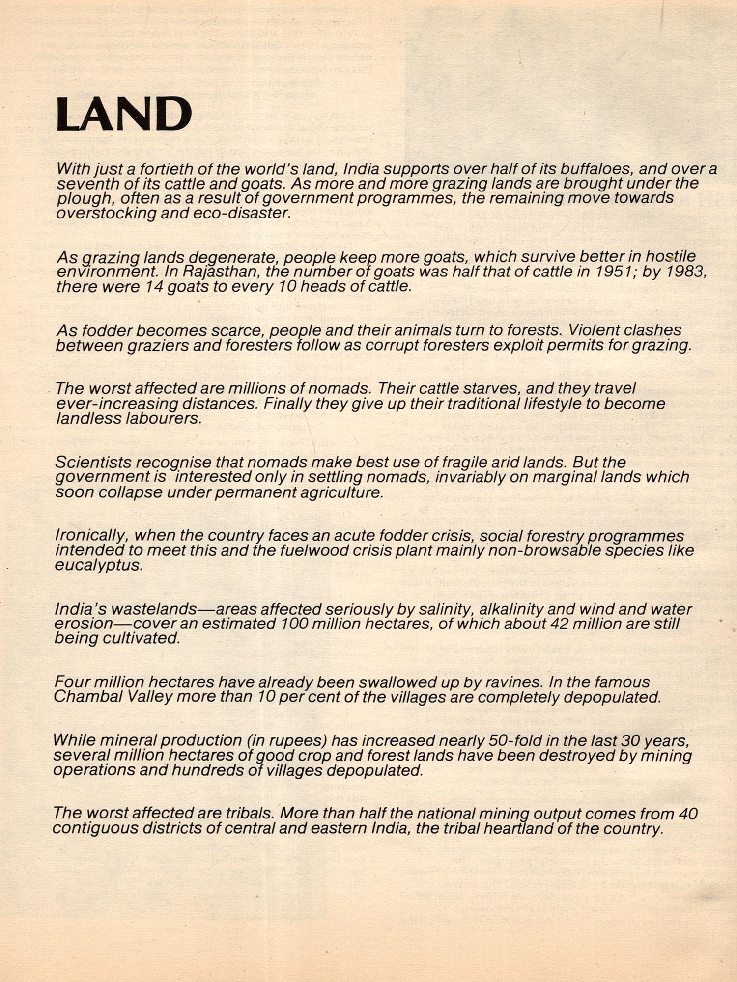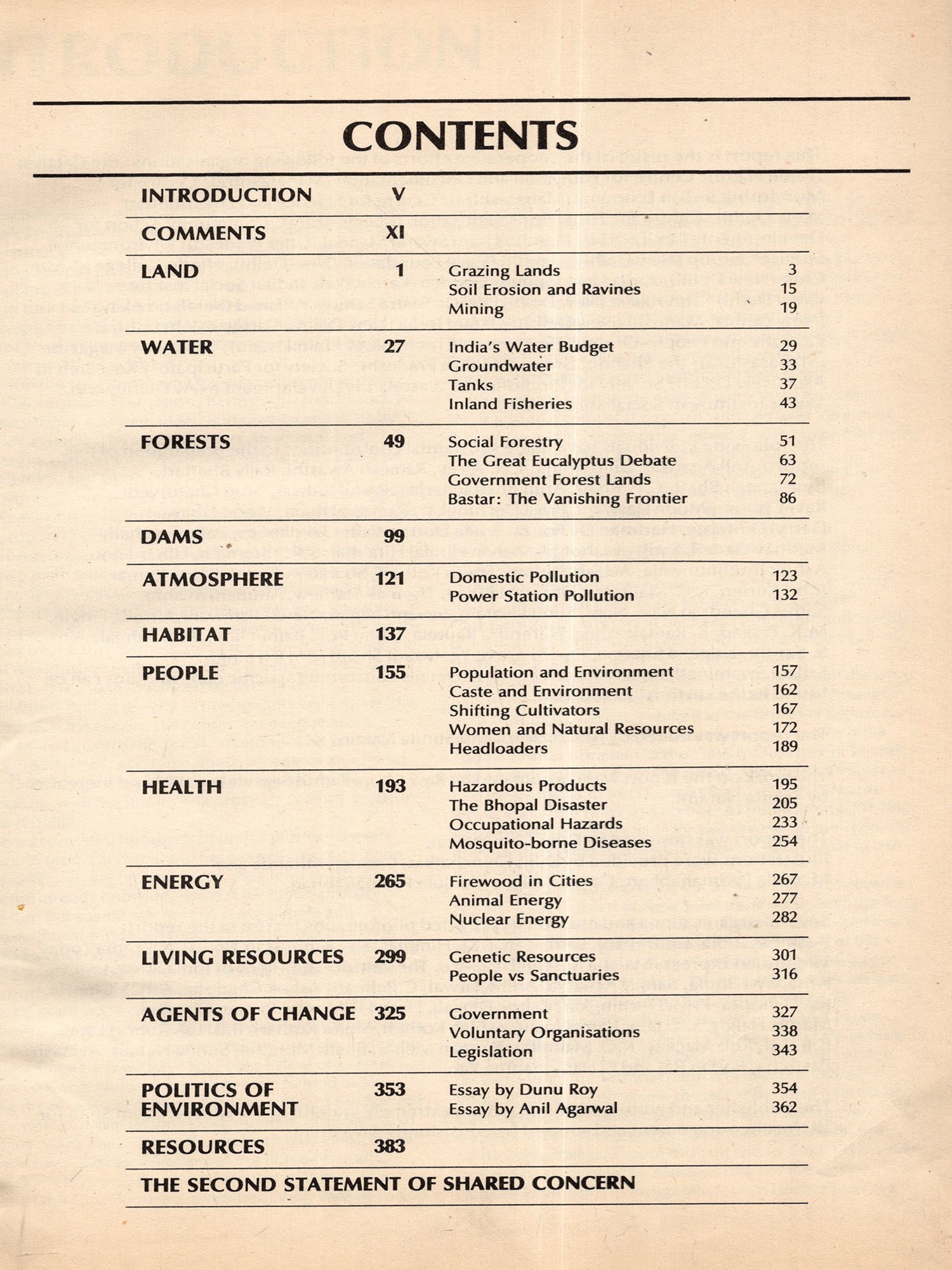 It is over two years that the first citizens' report on the State of India's Environment was released. Its reception was far beyond our expectations. We had been able to put the report together in just about five months. Information had come rolling in and as the trickle grew into a flood, the report in turn had grown from an intended 100-page monograph to a 200-page book. That fact had been an indicator to us of the growing nationwide concern over environmental deterioration.