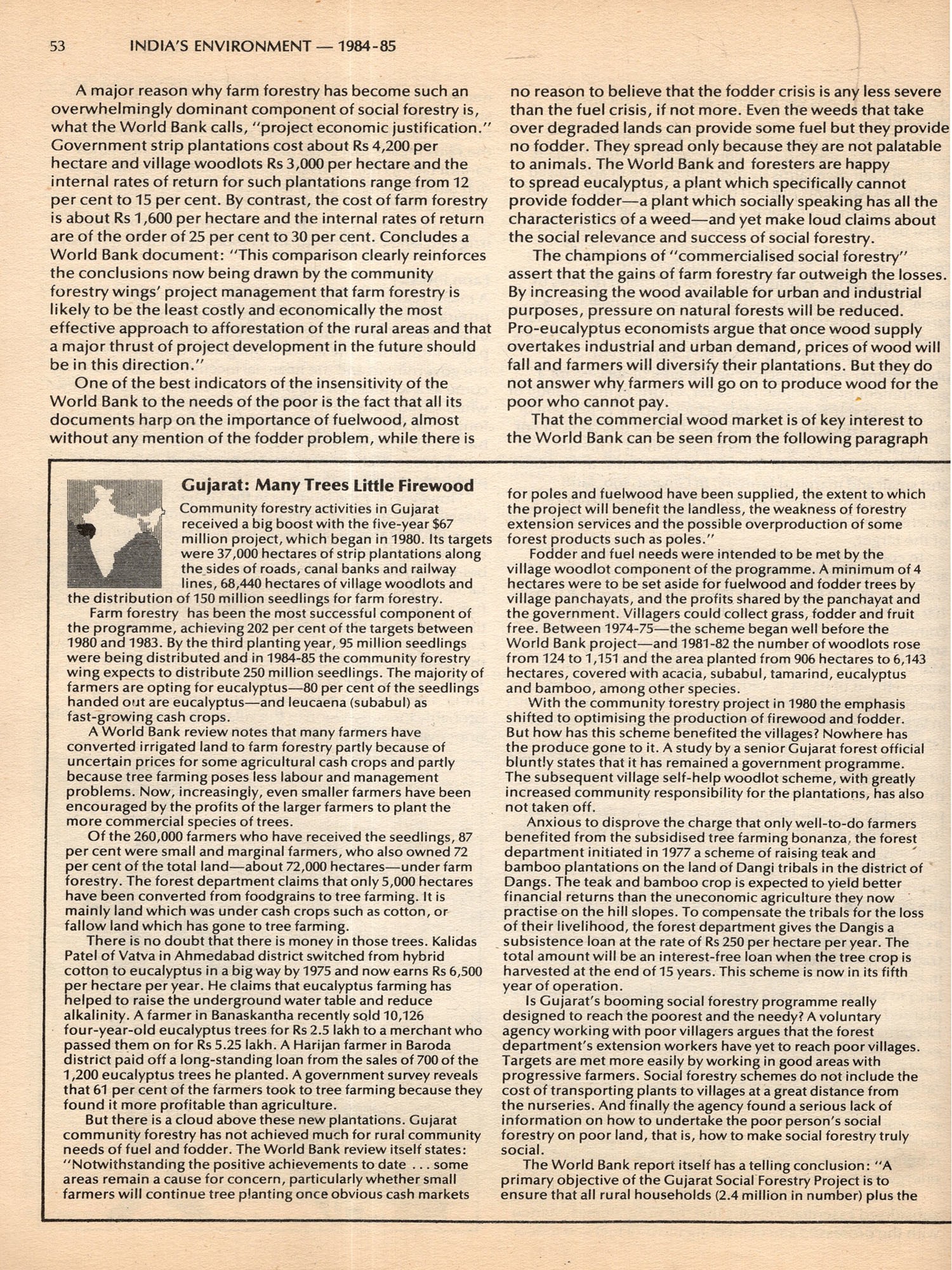 Friends in the press went all out to help spread the word about the report. To name just a few: Dina Vakil arranged for a one and a half page spread in the Express Magazine. Suman Dubey arranged for a three-page review in India Today. Amrita Abraham in the Sunday Observer published a page full of extracts from the report. Claude Alvares wrote two long articles in the Deccan Herald. Darryl D'Monte wrote about the book in a number of publications. Krishna Raj provided enough space for two reviews in the Economic and Political Weekly and Rusi Engineer gave notice to it in Business India.