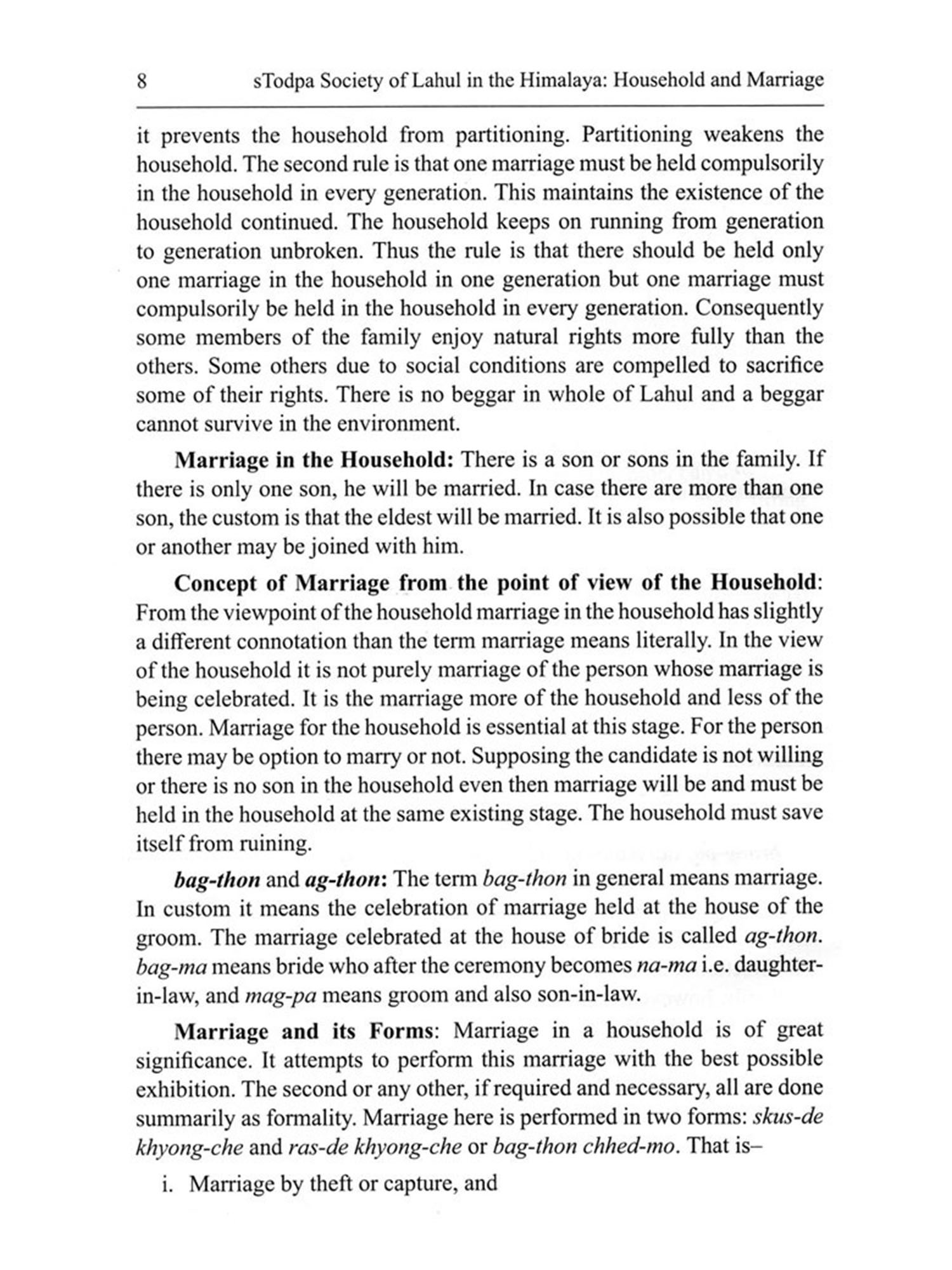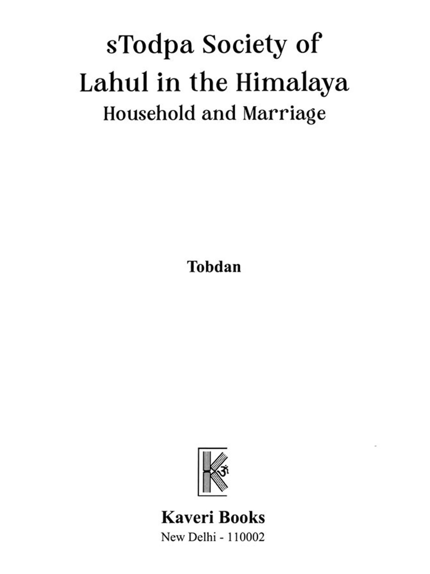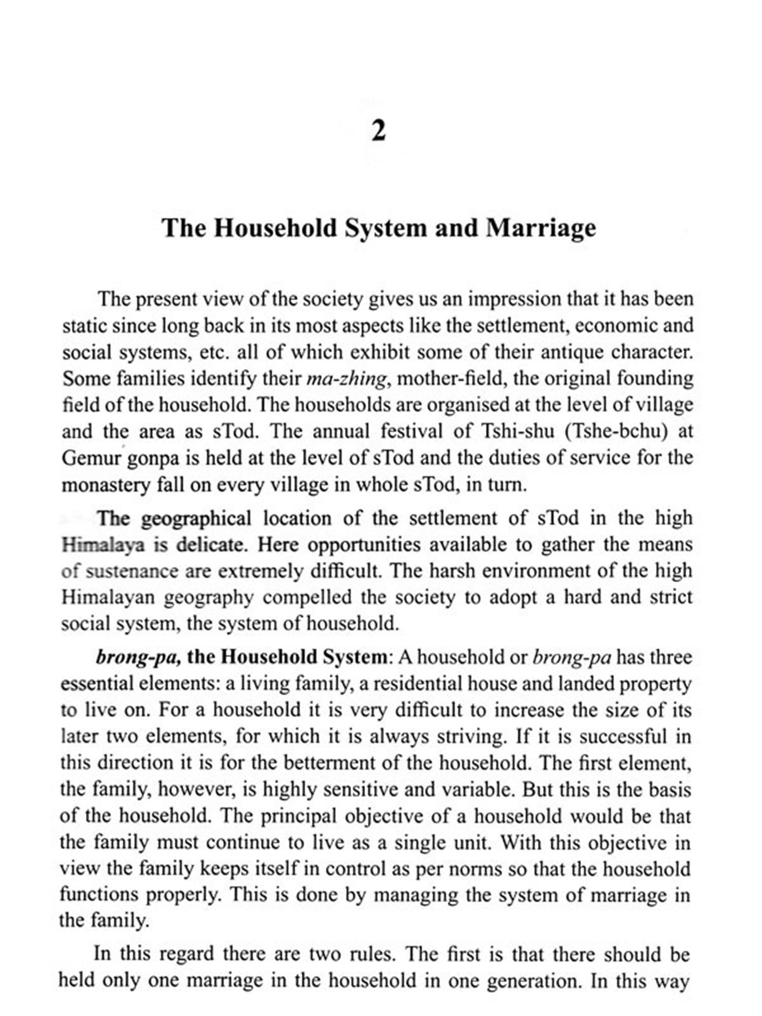 Stodpa Society of Lahul in the Himalaya: Household and Marriage