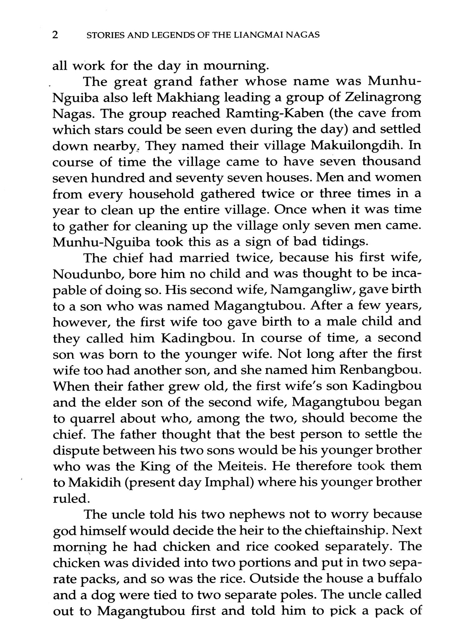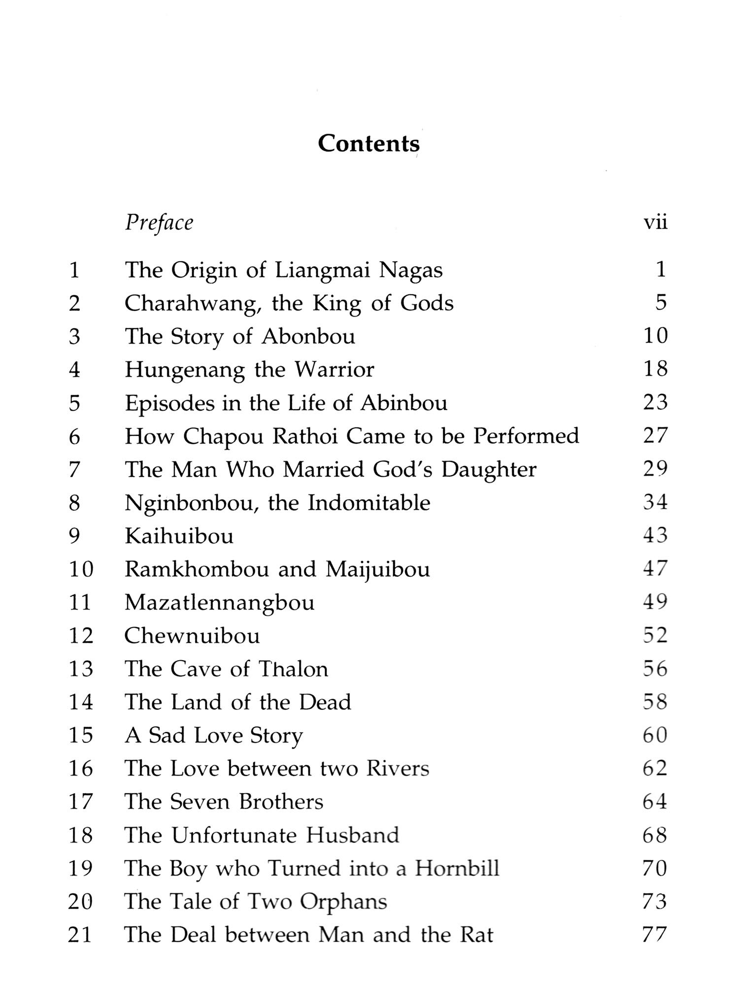 This is a much revised, and hopefully, improved version of my earlier book, Liangmai Nagas, Legends and Stories, 1991 (Vikas Publishing House Pvt. Ltd.). The stories and legends put together here were collected with the help of my research student Newmai Honibo; and, as far as Newmai and I know, this is the first time that these tales are being told in English.