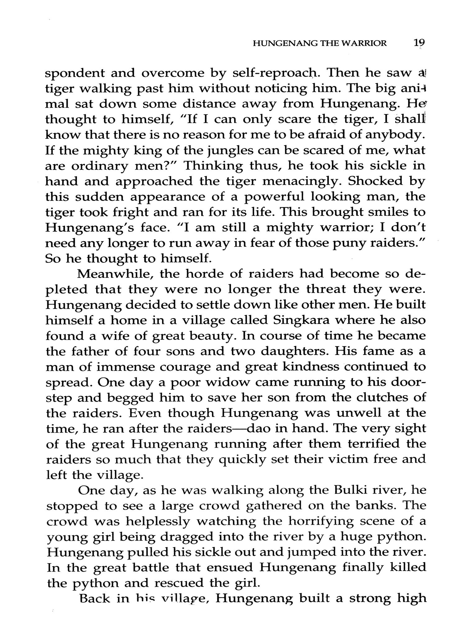 My first debt of gratitude is to the elders of the villages of Ritiang, Incheng, Thalon, Impa, Pheluang, Reng, Innemning, Tamingzam and Inkan. They told these tales to Newmai and allowed him to record them on a rather primitive tape recorder. These were then transcribed and finally translated into English. In the present revised version, I have tried to improve the translation as well as the presentation. But I have no doubt at all that much of the spirit of the original is lost in the translation and in the retelling.