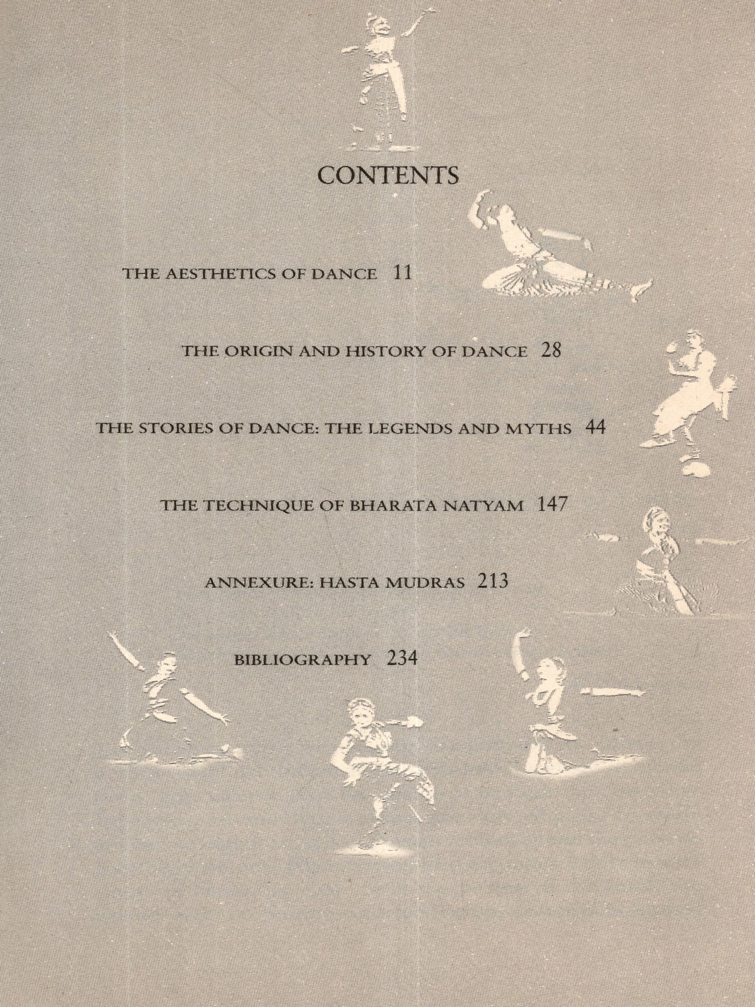 With more than gratitude, I want to thank my Guruji, Sri Santhanam, who has not only taught me most of what has been written in this book but has done it with the all-encompassing warmth in the true guru-shishya parampara. Many, many thanks to Gautam Vaghela for the beautiful line drawings and for the constant faith in my ability. Thanks due to Gunjan Singh for her painstaking reading of the manuscript, for her invaluable suggestions. To Uma Swaminathan, for all her help in so many areas that I can't list them out. To Nilima Mansukhani, for using all the cards in her pack to make sure I completed this project. To Vivek Hurry, for all the patient help with everything that had to do with a computer. To Prema, Maya and Sita for their translation efforts and Mohan for his photographic ones. To Shiv Sahai for many things. To Malini, for being there always. To the Sangeet Natak Akademi, Delhi, the Sruti Foundation, Chennai, and Kalakshetra, Chennai, for their generosity in providing and letting me use their archival material. To the staff of the Asiatic Society Library, Mumbai, for their cheerful help in finding all relevant references. To all the dancers, who have assisted with information and their generous permission to use their photographs. And very importantly to my publishers, especially Alka Thakur, Chandana Dutta and Shubhra Dey for their warm and positive reaction to everything important. To so many other people, friends and family, for their support and active encouragement, that I'd need another book to list them out, but they know who they are, and I thank them all.