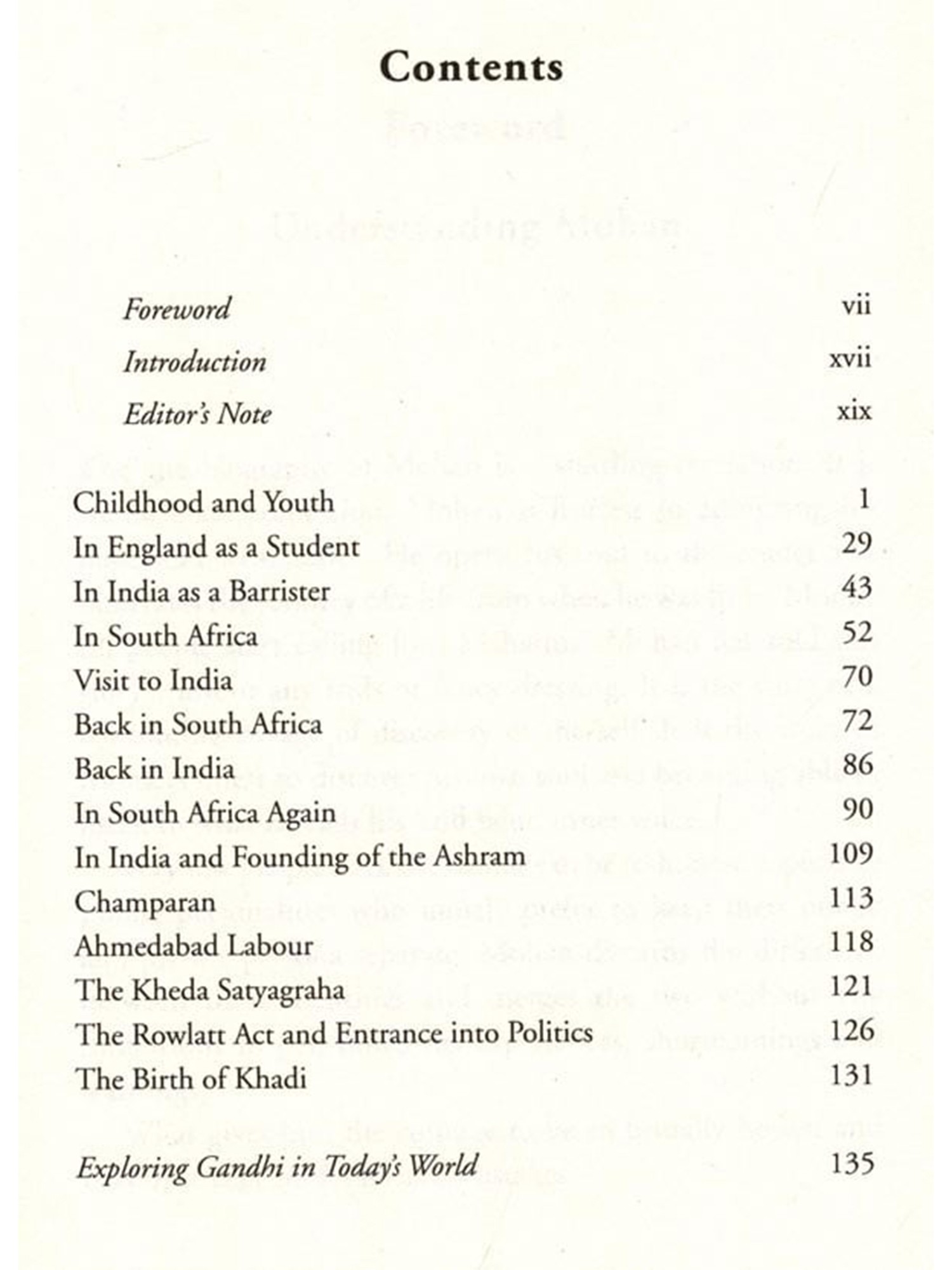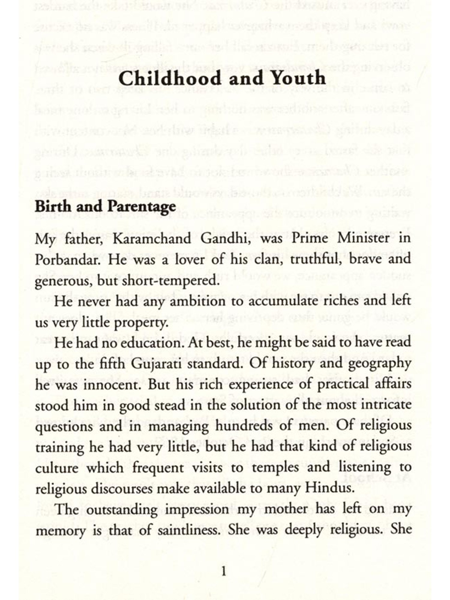 The autobiography of Mohan is a startling revelation. It is an intimate confession. Mohan is fearless in admitting his flaws and weaknesses. He opens his soul to the reader and illustrates the journey of a life from when he was little 'Monio' till people start calling him Mahatma. Mohan has told this story without any frills or fancy dressing. It is the story of a continuing voyage of discovery of the self. It is the story of Mohan's quest to discover his own soul and becoming able to listen to what he calls his 'still faint' inner voice.