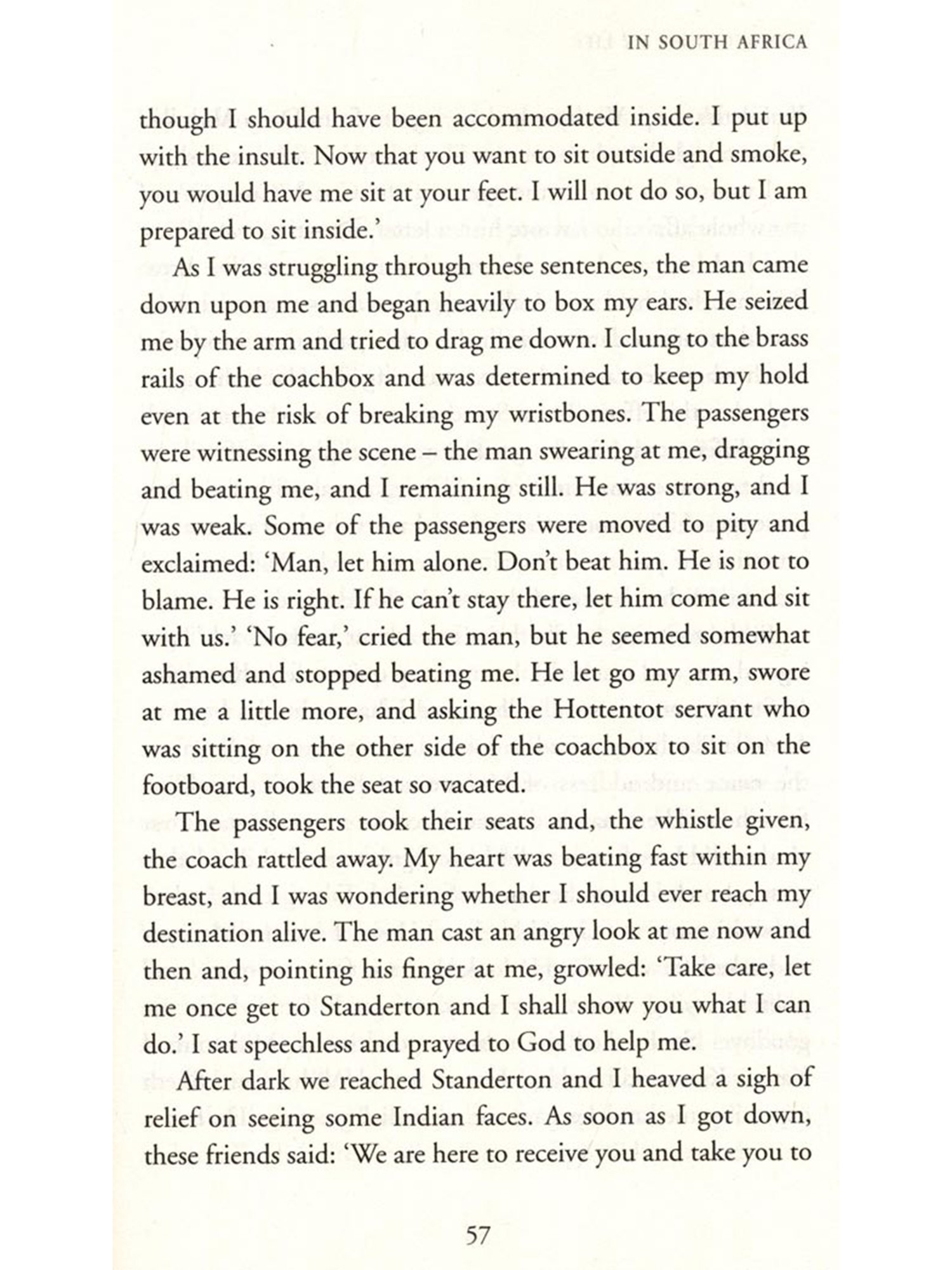 Mohan's transition begins in South Africa, where he emerges as an activist-crusader for the equal rights for Indians residing in this colony of the British Empire. It is here that he adopts the tenets of an ideal communal life by constantly experimenting with it. It is here that he takes the 11 pledges to live by in the ashram community he establishes in Phoenix near Durban in the Natal province.