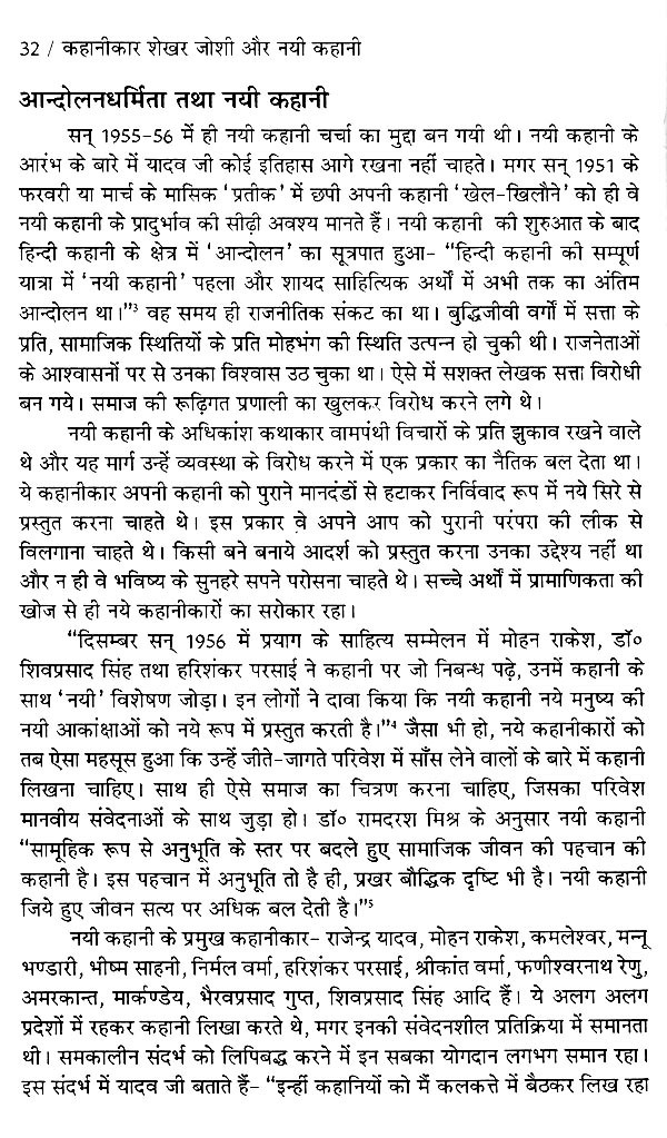 जिसके अन्तर्गत नयी कहानी की भूमिका, कहानी में नया क्या है?, नयी कहानी : लेखक के बही खाते से, पारंपरिक कहानी, नयी कहानी तथा उसकी नवीन यात्रा, नयी कहानी : सफलता और सार्थकता, नयी कहानी के कुछ हस्ताक्षर, नयी कहानी और शेखर जोशी की कहानियाँ, नयी कहानी की उपलब्धियाँ, नयी कहानी की सीमाएँ, निष्कर्ष आदि पर प्रकाश डाला गया है।