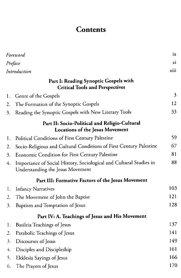The present volume is an outcome of years of engagement with the Bachelor of Divinity students under the Senate of Serampore College (University) in which I am privileged to teach a course on Synoptic Gospels. It is a fully updated and thoroughly revised version of my earlier Understanding the Jesus Movement in the Gospel Traditions. This revision was called for by two factors: first, to incorporate and introduce the students to newer terrains of scholars' works on Jesus and the Synoptic Gospels, and second, to design its contents as per the latest Serampore University's syllabus on the course "Jesus Movement in the Synoptic Gospels." Accordingly many new chapters have been added to and many sections have been omitted from the previous version.