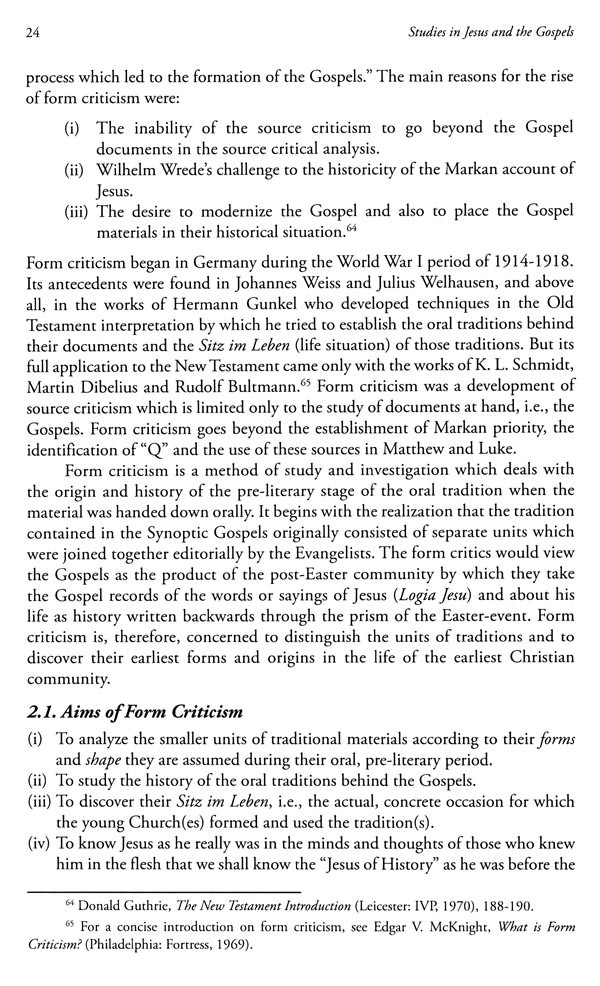This book is a thoroughly revised and updated edition of Understanding the Jesus Movement in the Gospel Traditions. It is designed as a resource book for the current course on Synoptic Gospels in Bachelor of Divinity degree level studies under the Senate of Serampore College (University). While it is structured according to the syllabus of the course, the book aims to introduce the issues and current scholarly discussions on matters of Jesus and Synoptic Gospels research. Though the students are the main targets of the book, both the pastors and lay believers alike will find it helpful for understanding Jesus and the Gospels.