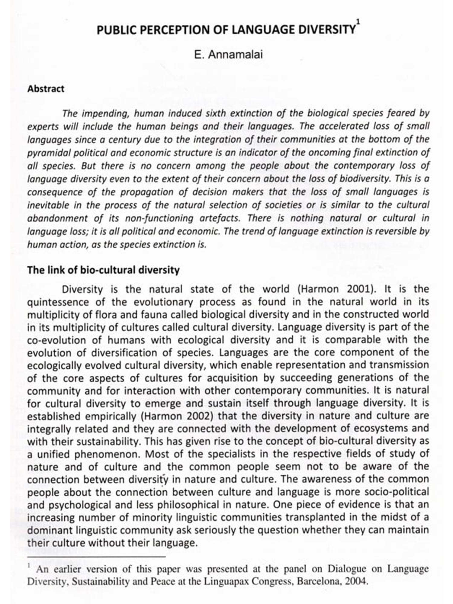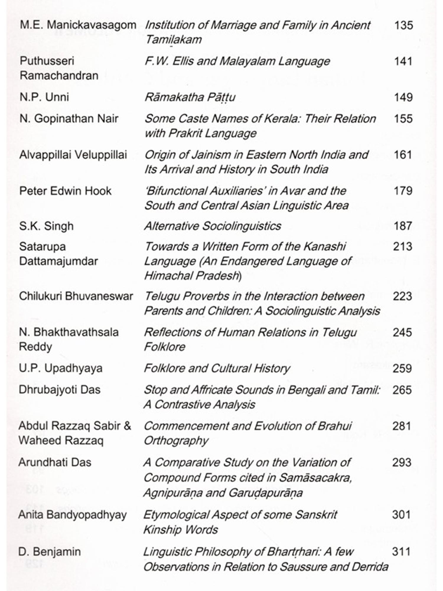 Considering his unparalleled contributions to Indian linguistics in general and to Dravidian linguistics in particular, the Council of Direction of the International School of Dravidian Linguistics decided to bring out a suitable publication in honour of this multifaceted personality. The effort taken by Dr. T.P. Sankarankutty Nair in this regard is remembered with gratitude. Through DLA News and through personal contacts, he could gather some research articles for this purpose. After making a review of the matter, the Council of Direction of ISDL decided to nominate Professors G.K. Panikkar, B. Ramakrishna Reddy, K. Rangan and B.B. Rajapurohit as editors for this ambitious project.