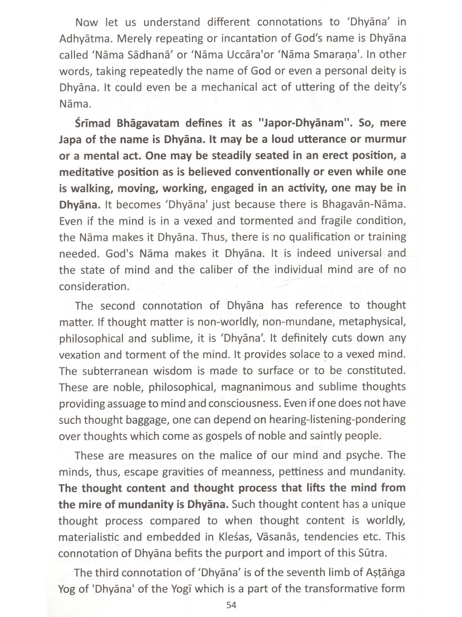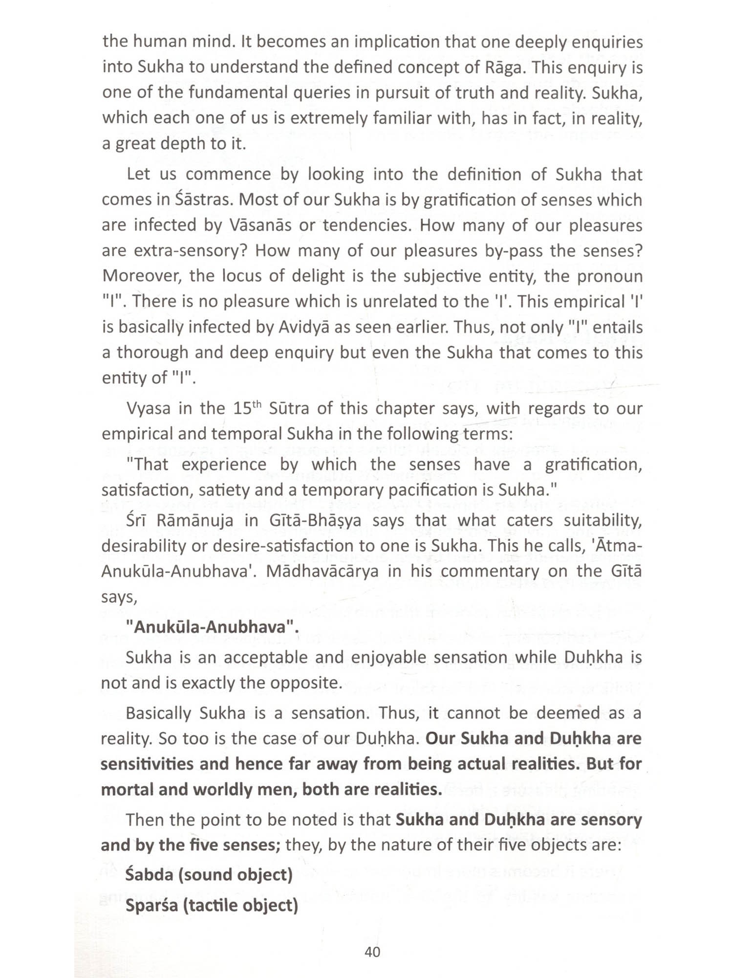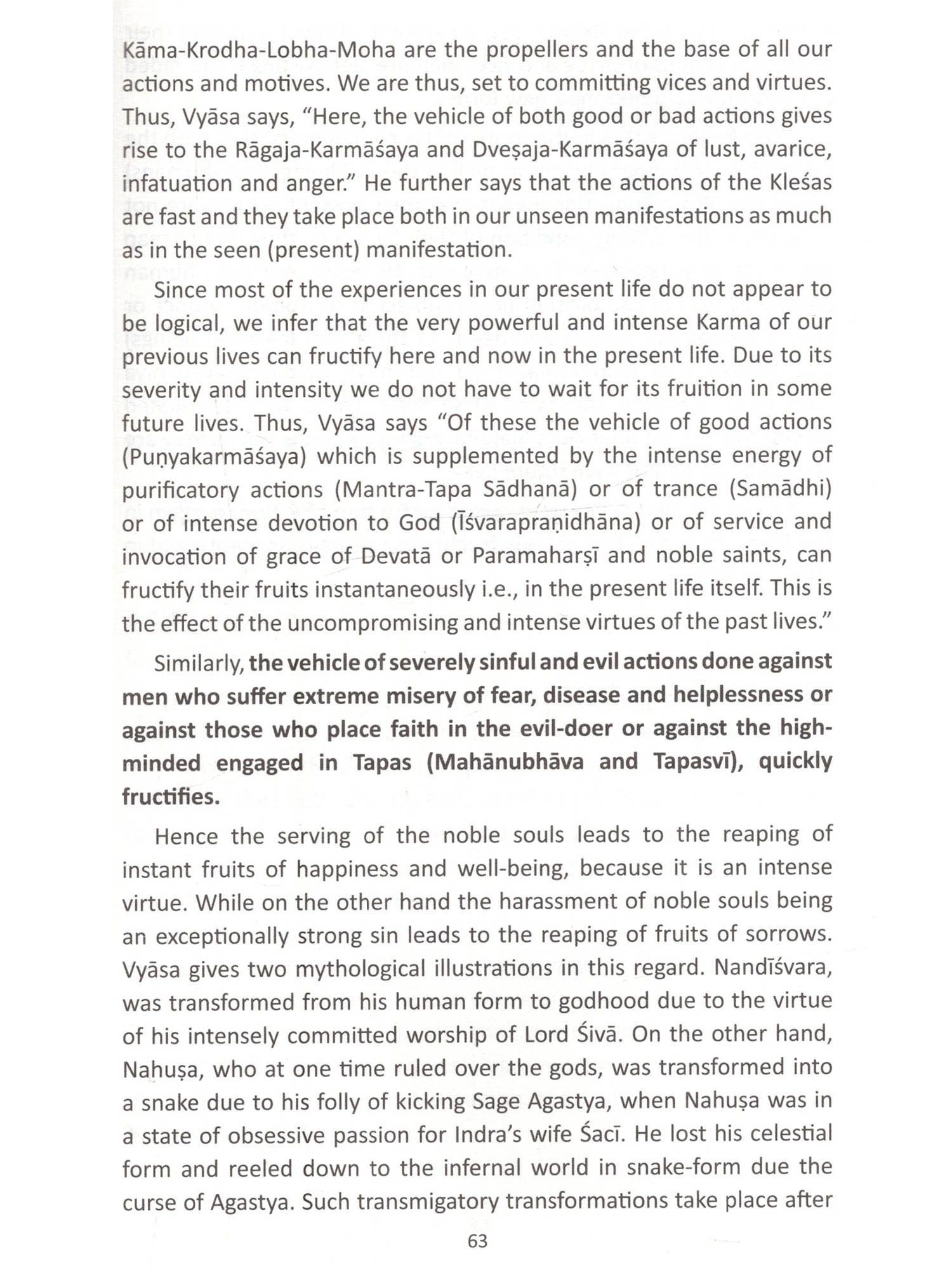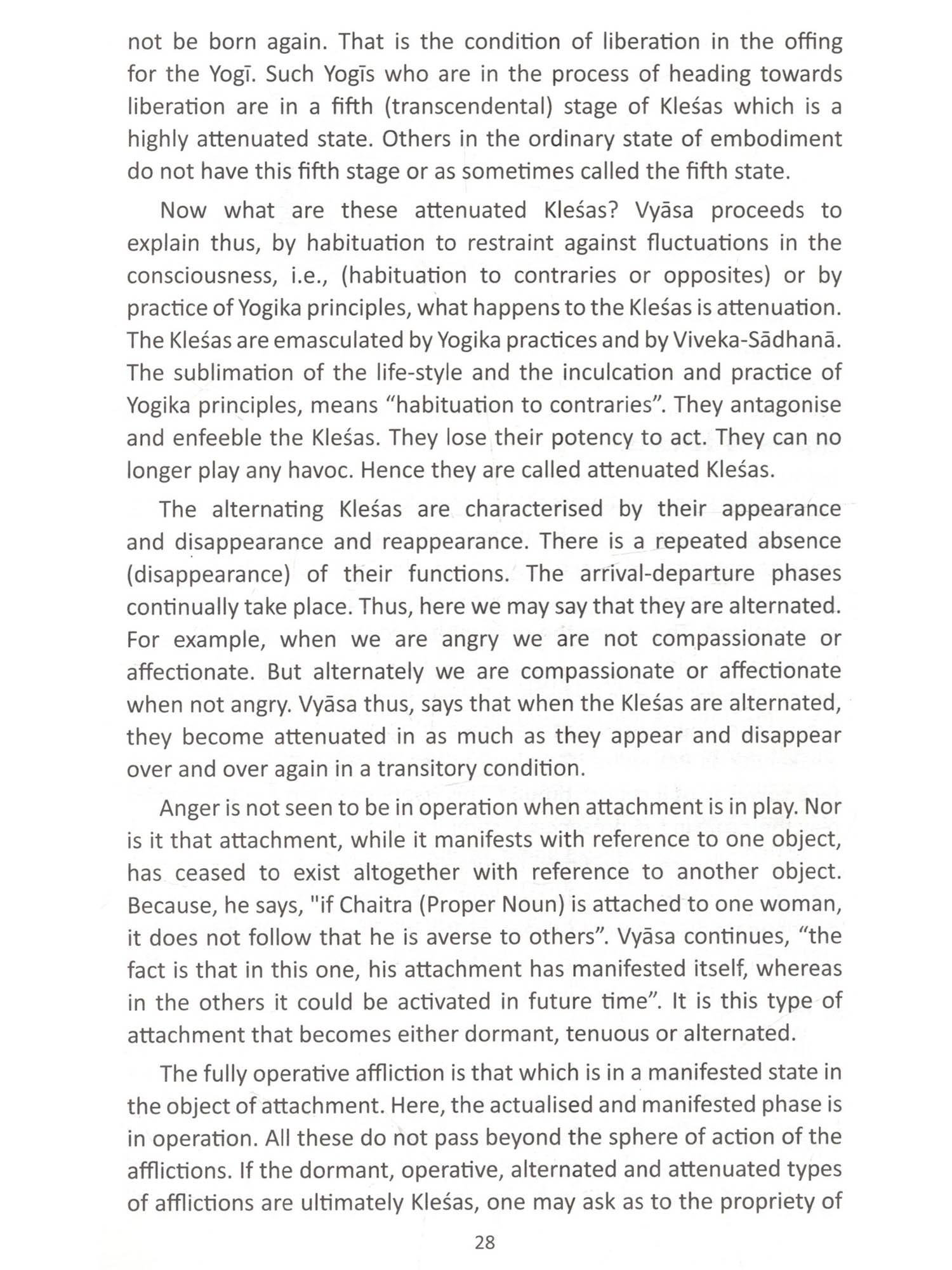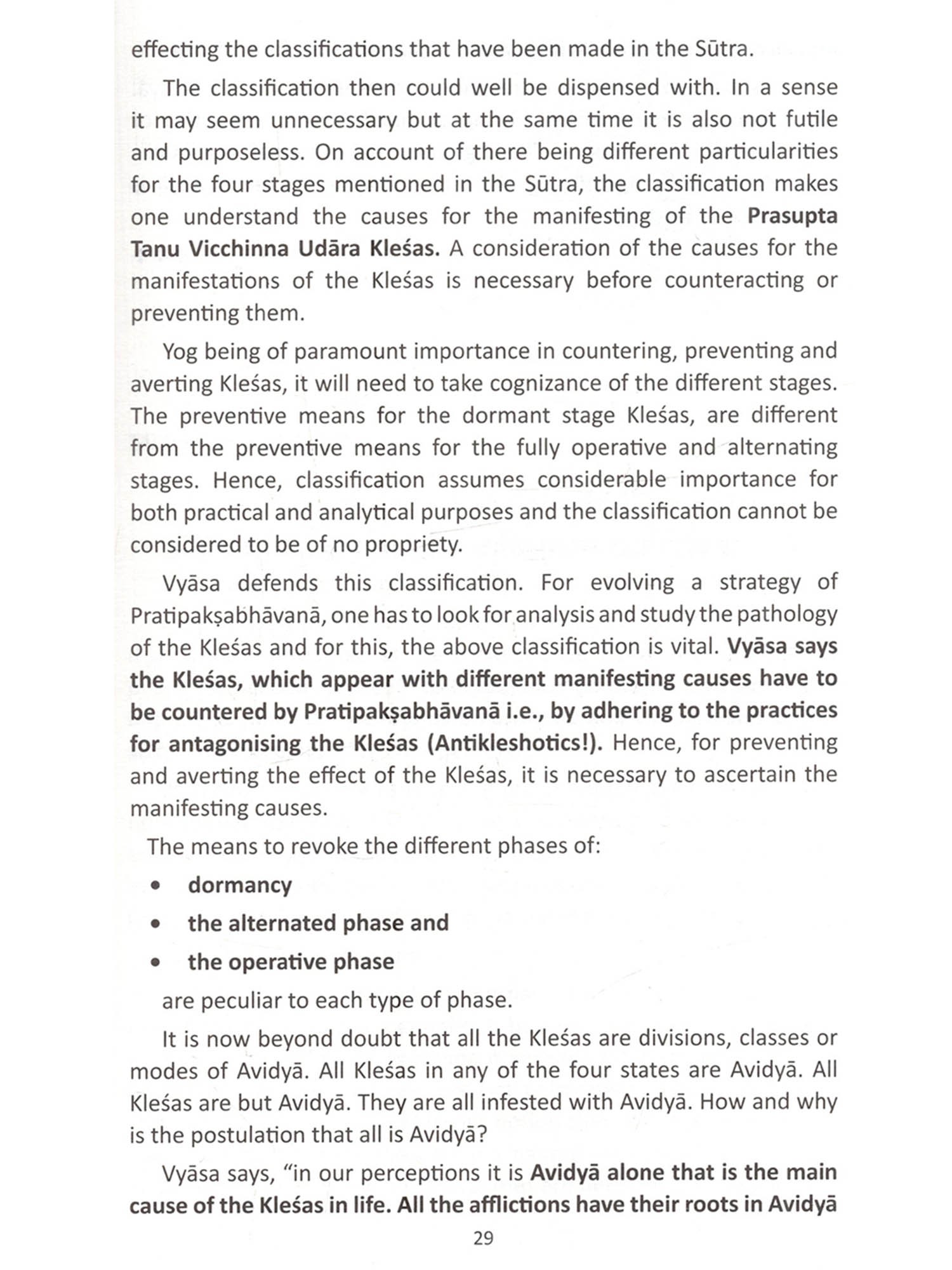 The first volume of the study of Yog Sütras consists of the first quarter of the Sütras titled Samadhi Päda. It began by defining Yog and then went on to mentioning quintessential Yog of accomplished Yogis, the Uttama-Adhikari, which is the class of supremely qualified Yogis. Thus, for the Yog seeker there was a huge volume of basic, fundamental and foundational information, vital for learning Yog. The Samadhi Pada, therefore, is a mine of information for the seekers of Yog who are not of the level of the supremely qualified. There is hardly any instructional, tutorial or 'practise' matter in it. The Uttama-Adhikārīs do not need any such instructional material since they belong to the accomplished and exclusive class of Yogis. The Samadhi Pada mentions how brimming Yog actualises in such Yogis by way of Samādhis. Samādhis are of two kinds viz., Samprajñāta and Asamprajñāta Samādhi. Then, the supreme class of Yogis gravitate towards the final spiritual summum bonum, which is Kaivalya or emancipation. For the keen spiritual seeker, who is well-disposed in Samskāras, there is a fascinating over-view or bird's-eye view of the Yogi's final journey to ultimate spiritual endeavour. There is a heart-touching view and information of essential Yog and the essence of Yog. The means of this Yog is codified as 'Abhyasa' (the effort to be-steady the Citta). For the Uttamādhikārī, whose Citta is rich and resourceful and brimming with Nirodha Samskāras and Vairagya, Abhyāsa is the means for Vairagya from all objects of the universe. Gunas are infra and supra-infra matter or source matters for all and Paraloka. These objects bewitch and bind one to the self and bewitching objects of this world and the worlds hereafter, ie, Thaloka strongly binds one to life after life and death after death! The Yogi here gets insulated from such gravities. Therefore, the Yogis dart in the 'no-gravity' liberation zone. But what are the means of Yog for the others? Thus Patanjali begins the second chapter to divulge the means which need to be acquired. The already-mentioned means of 'Abhyasa' and 'Vairagya' are opened and decoded. Hence the second volume is captioned "Precepts on means of Yog called Sadhana Päda". This should not be mistaken as Sädhanā Pāda. Sādhanā means practices. Here Sädhana stands for means or tools. Hence it should be very clear that the second chapter of Yog Sütras is about the means of Yog. Yog, because of its magnanimity can start anywhere. This is because it has an open architecture and a huge gateway. Yog has, fortunately a 'non-Yogika gate'. This can lead to Yog. Non-Yog does not antagonise Yog. Un-Yog would do that. Thus precaution should be taken we do not slip into unyogika practices. Yog has a magnanimous run-up with continuous allowances leading the way in a graduated manner. That is to say that one can commence Yog for health and physical culture and fitness or for remedials for the body. Thus Yog can be the means for such purposes. It can create relaxed and eased out psycho-sensory conditions. On the journey, at some stage, our practices should turn out and augment Abhyäsa and Vairagya potentials apart from the benefits of consumer packages. Thus the test for the seeker that the practices are on the right track. Sooner or later one must ideally adhere to classical and traditional approach than the current process of Āsana+Prāāyāma+meditation which has become fashionable in our times. The age-old process is broad-based and fit for the grand super structure of Yog. This needs to be understood and pursued.