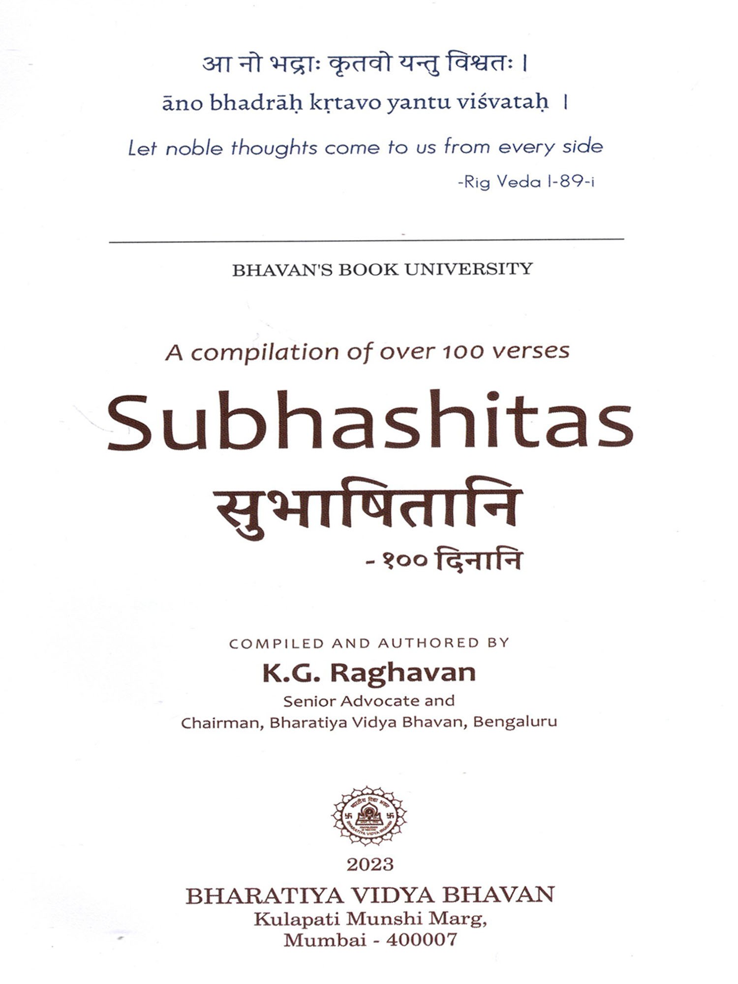 Sri. K.G. Raghavan, the author is a respected senior advocate. Apart from his forensic brilliance, this collection of 'Subhashitas brings out another dimension of his personality at once beautiful, enriching and spiritually elevating. It is only an evolved soul that can contribute to the enrichment of the moral and spiritual dimensions of contemporary life.