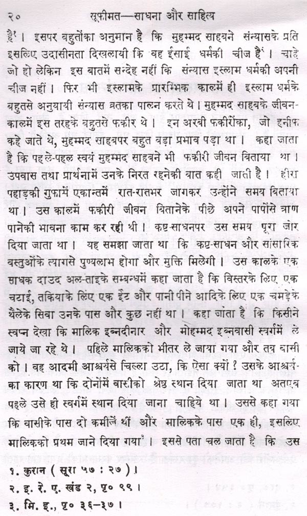 मेरे मित्र प्रो० रामपूजन तिवारीने 'सूफी साधना और साहित्य के विषयमें यह महत्त्वपूर्ण पुस्तक लिखी है। उन्होंने सूफीमतकी साधना और साहित्यके मूल रूपको समझनेके लिए इस्लाम धर्मके साथ उसके सम्बन्धको स्पष्ट किया है, इस्लामके आविर्भावके समय अरब देशोंकी, जो सामा-जिक और राजनीतिक अवस्था थी, उसे समझानेका प्रयास किया है, ईरानकी तत्कालीन परिस्थितिपर उसकी जो प्रतिक्रिया हुई उसका विश्ले-पण किया है और इस पृष्ठभूमिमें इस्लामके अन्तर्गत उत्पन्न होनेवाले विभिन्न सम्प्रदायोंका विवरण भी प्रस्तुत किया है। यद्यपि भारतवर्ष में इस्लामके अनुयायियोंकी संख्या बहुत अधिक है और उनके साथ हमारा रात-दिनका सम्बन्ध है, तथापि यह दुःखकी ही बात है कि इस शक्ति-शाली धर्म-मतके आविर्भाव और प्रसारकी कहानी हिन्दी पाठकोंको उचित रूपमें मालूम नहीं। तिवारीजीने अनेक प्रामाणिक इतिहासकारोंकी रचनाओंके आधारपर इस्लामके उद्भव और प्रसारका लेखा-जोखा प्रस्तुत किया है। यह विवरण सूफीमतकी जानकारीके लिए तो आवश्यक है ही, और वस्तुतः इसी उद्देश्यसे यह लिखा भी गया है, परन्तु साधारण हिन्दी पाठकों के लिए स्वतन्त्र रूपमें भी इसका महत्त्व है क्योंकि इस पुस्तकके इस अंशसे हम भारतवर्षमें प्रचलित एक अत्यन्त शक्तिशाली धर्म-मतके स्वरूपको समझनेमें सहायता पाते हैं। विद्वान् लेखकने इस्लामके प्रादुर्भाव और उसके प्रभावमें प्रथम आनेवाले देशोंकी राजनीतिक तथा सामाजिक अवस्थाकी पृष्ठभूमि प्रस्तुत करके मूल सूफी भावनाके आविर्भाव और प्रसारकी कहानीको सहज और मनोरंजक बना दिया है और फिर एक-एक करके सूफी साधकों, उनके सिद्धान्तों और उनके सम्प्रदायोंका विस्तारपूर्वक परिचय दिया है। उन्होंने दिखाया है कि किस प्रकार सूफी साधकोंने प्रेम और ज्ञानकी साधनाको मानव-ग्राह्य बनाया है। भारतवर्षमें भी यह सम्प्रदाय व्यापक रूपसे प्रतिष्ठित हुआ है। तिवारीजीने उसका भी विस्तारपूर्वक परिचय दिया है। साधकोंने भारतीय-काव्यको नवीन समृद्धि दान की है। भारतीय काव्यकी इस नवीन और प्रभावशाली शाखाका परिचय दिये बिना यह अध्ययन-अपूर्ण रह जाता। तिवारीजीने उसका भी संक्षिप्त परिचय दे दिया है। इस प्रकार यह पुस्तक इस्लाम धर्मके आवि-र्भावसे लेकर सूफी सम्प्रदायोंके प्रादुर्भाव, प्रसार और प्रतिष्ठातककी कहानी बड़े सुन्दर ढंगसे प्रस्तुत करती है। हम भाव-जगत्के अलबेले मस्त साधकोंकी दुनियामें विश्वासपूर्वक विचरण करने लगते हैं; जहाँ प्रेम दिव्य और अलौकिक रूपमें प्रकट होता है और स्वाथों और संघर्षोंसे मरी हुई दुनियादारी तुच्छ और नगण्य प्रतीत होती है। यह मस्तीकी दुनिया धन्य है जहाँ आसक्ति और लगन अपनी चरम ऊँचाईपर जाकर मनुष्य-जीवनको चरितार्थ करती रहती है। ति