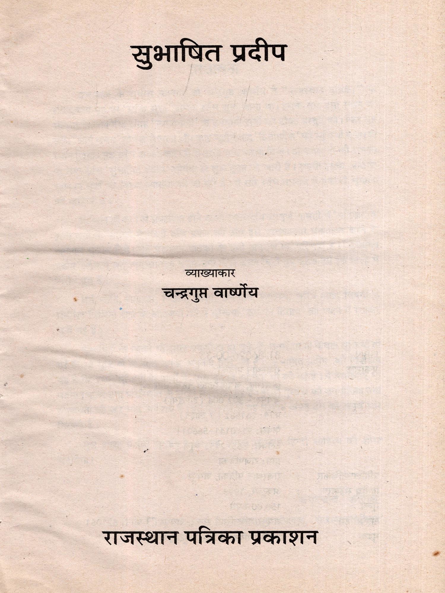 राजस्थान के मूर्धन्य पत्रकार श्री चन्द्रगुप्त वाष्र्णीय ने "राजस्थान पत्रिका" के संपादकीय पृष्ठ पर 'सूक्ति सुधा' नामक स्तंभ शुरू किया था। इसके बाद इसी स्थान पर संस्कृत के लोकोक्ति संग्रह' न्यायावली' के उपयोगी सूत्रों की टीका प्रस्तुत की। फिर यह स्तंभ' आर्ष वचन' शीर्षक से चला और कुछ महीने बाद' हितोपदेश' की सूक्तियों ने इसका स्थान लिया। यह स्तंभ आपातकाल में सेंसर ने बन्द करवा दिया। आपातकाल की समाप्ति पर नया स्तंभ 'सुभाषित प्रदीप' शीर्षक से शुरू हुआ जो जारी है। संप्रति इसके अन्तर्गत चाणक्य सूत्रों की विशद व्याख्या की जा रही है। ये सारे स्तंभ वास्तव में एक ही श्रृंखला की कड़ियां हैं।