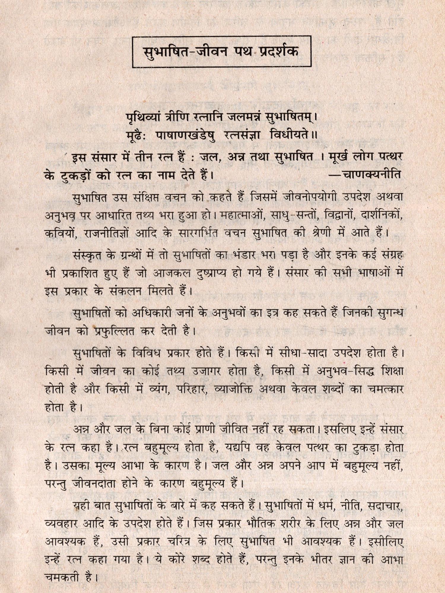 धर्म, नीति, सदाचार, विज्ञान, शिक्षा, राजनीति, स्वास्थ्य, चरित्र आदि विषयों से संबंधित विभिन्न देशों के आप्तजनों की ये सूक्तियां 'सर्वजन हिताय' को ध्यान में रखकर चुनी गई हैं।