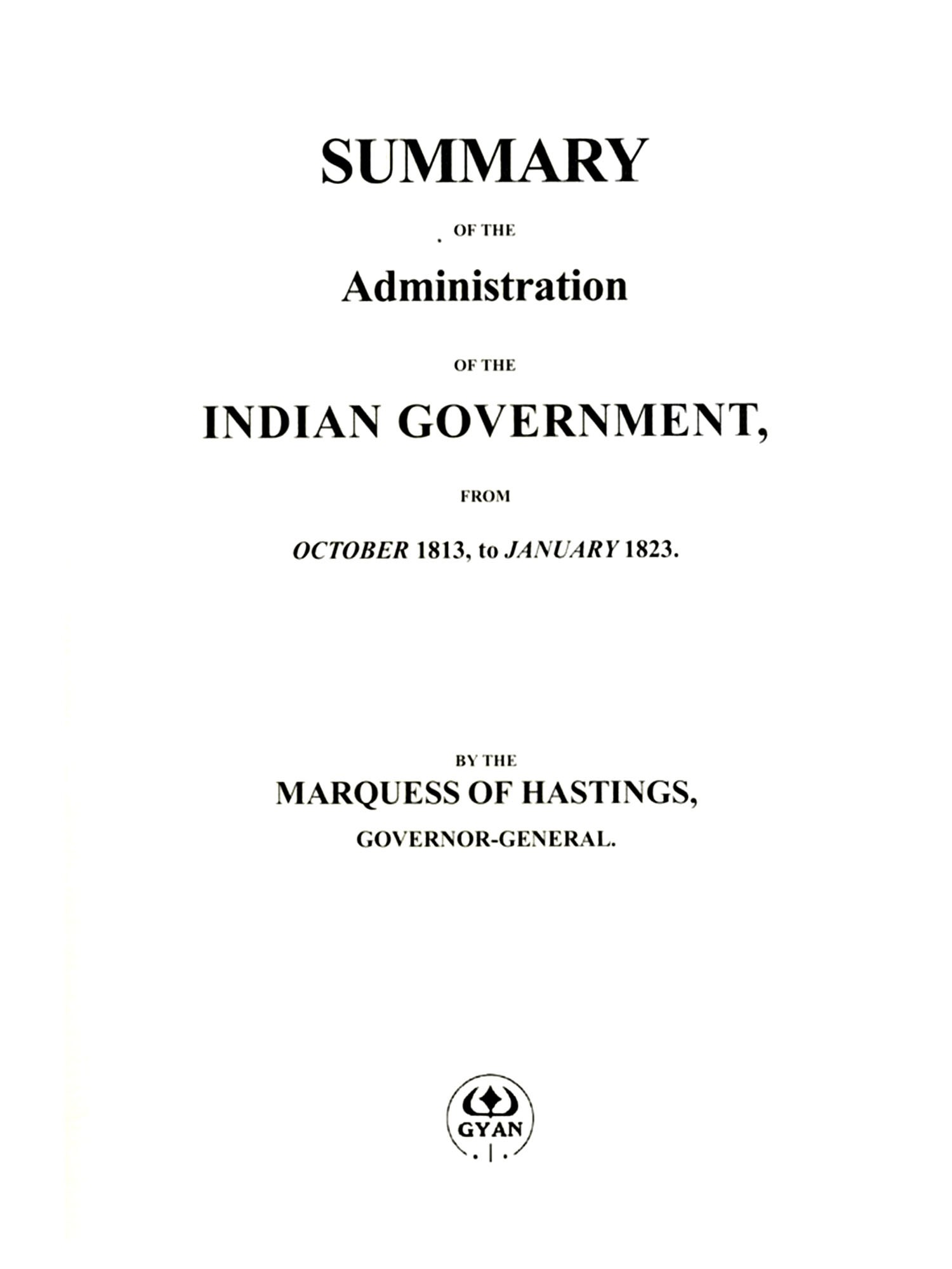 Summary of the Administration of the Indian Government from October 1813, to January 1823